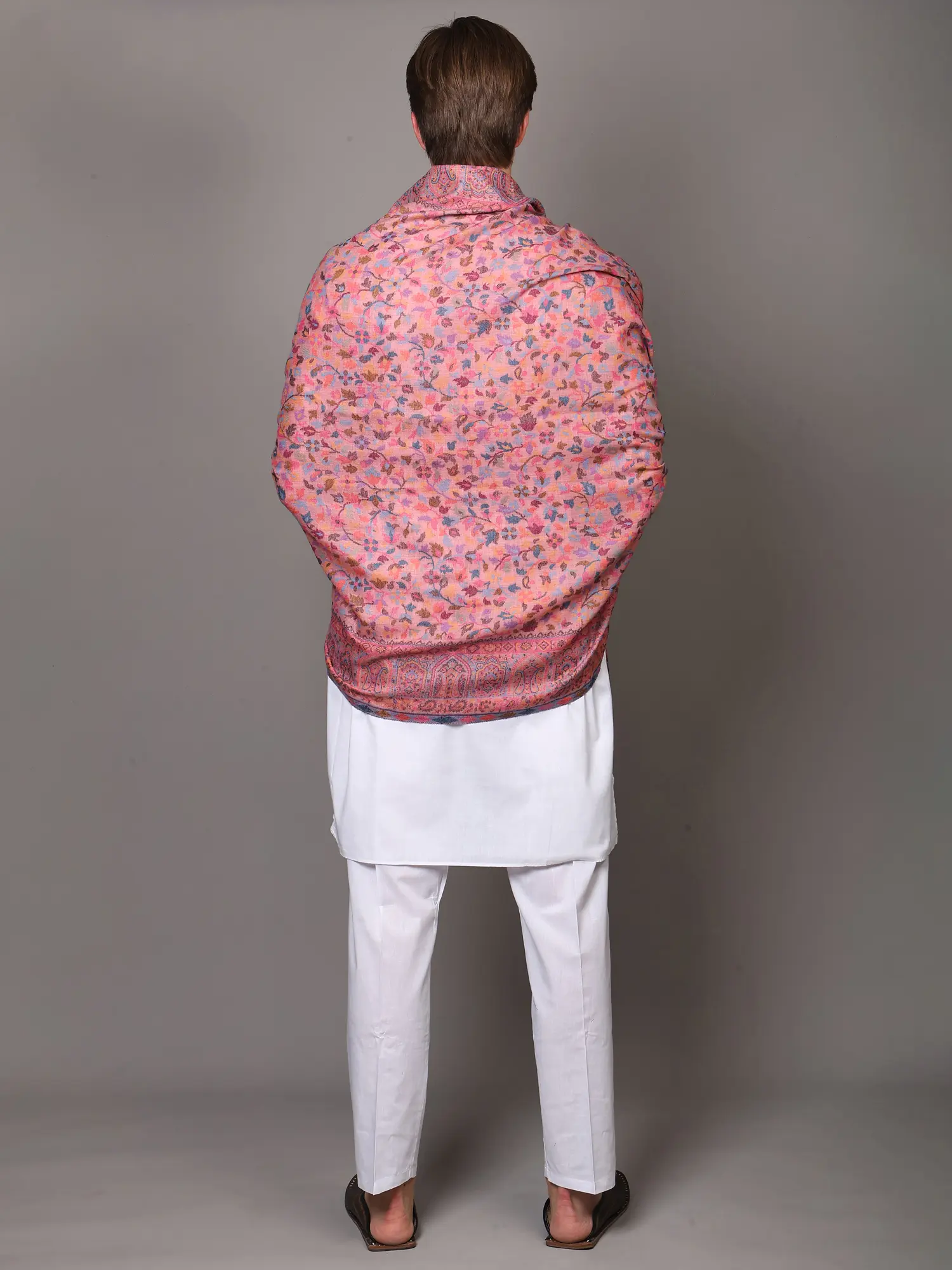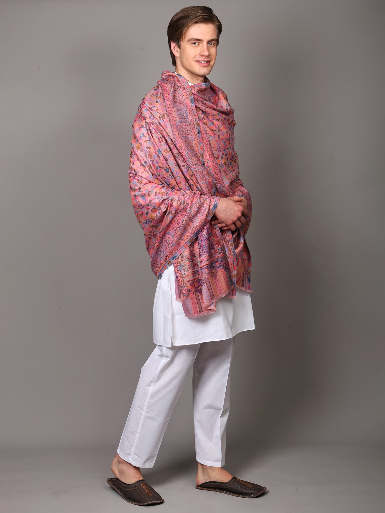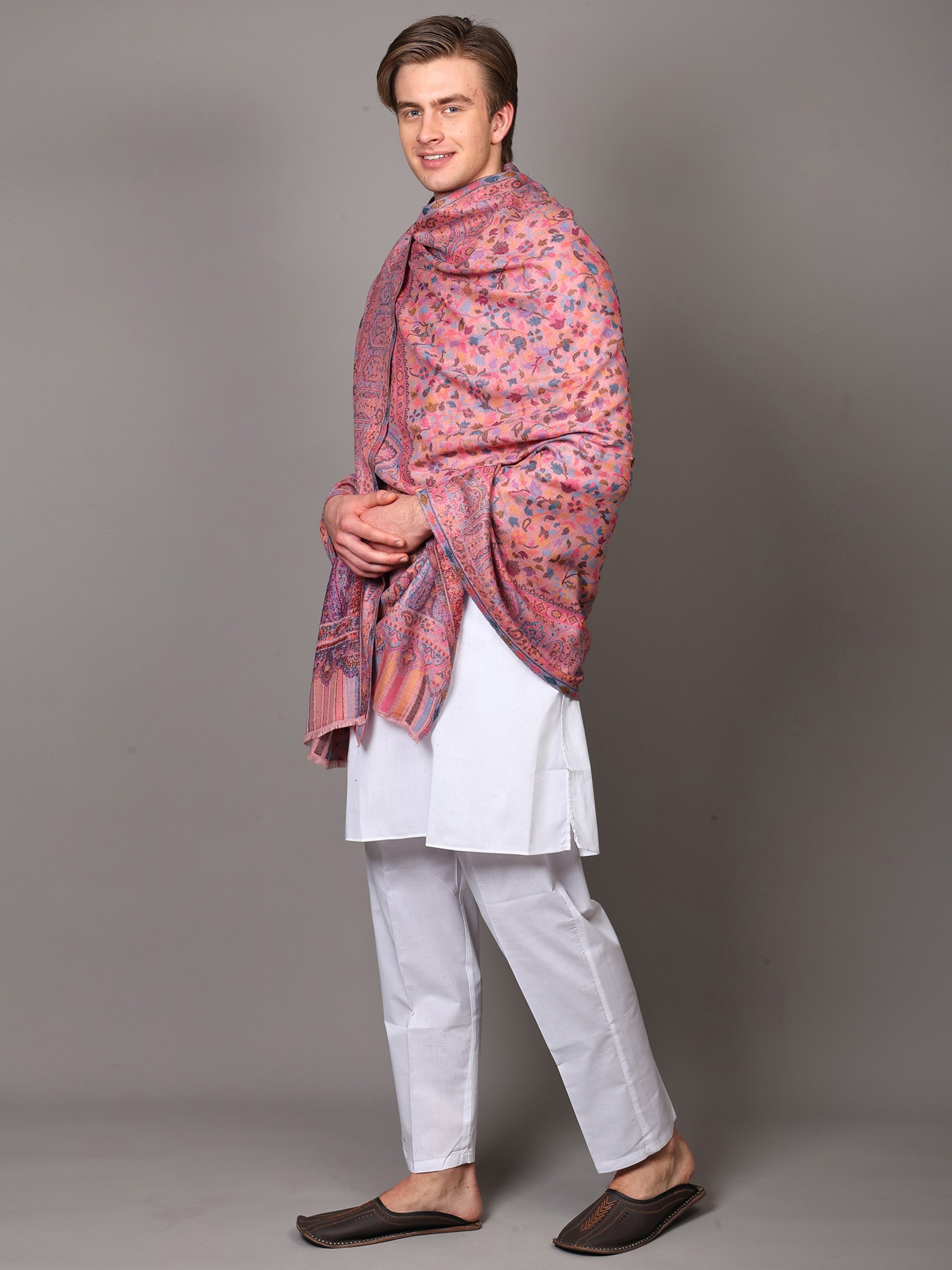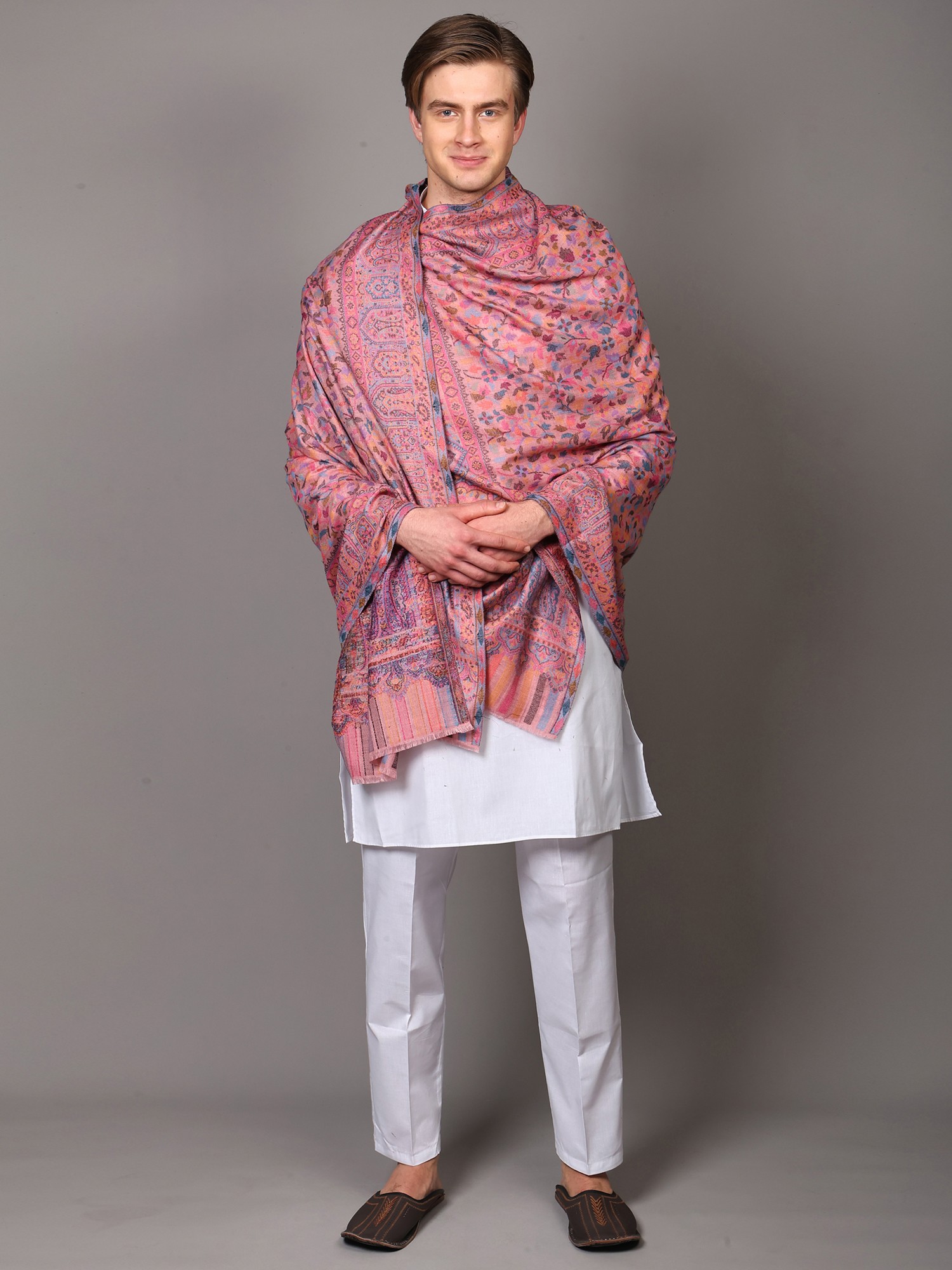 Men's Kani Jamawr Shawl with Woven Paisleys and Flowers from Amritsar