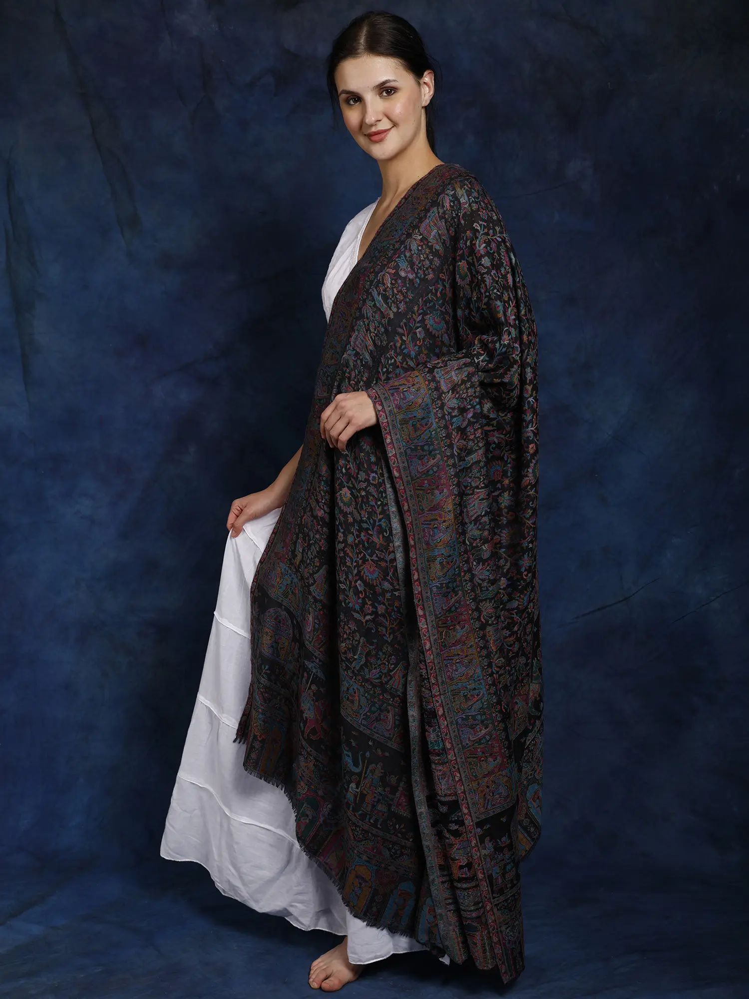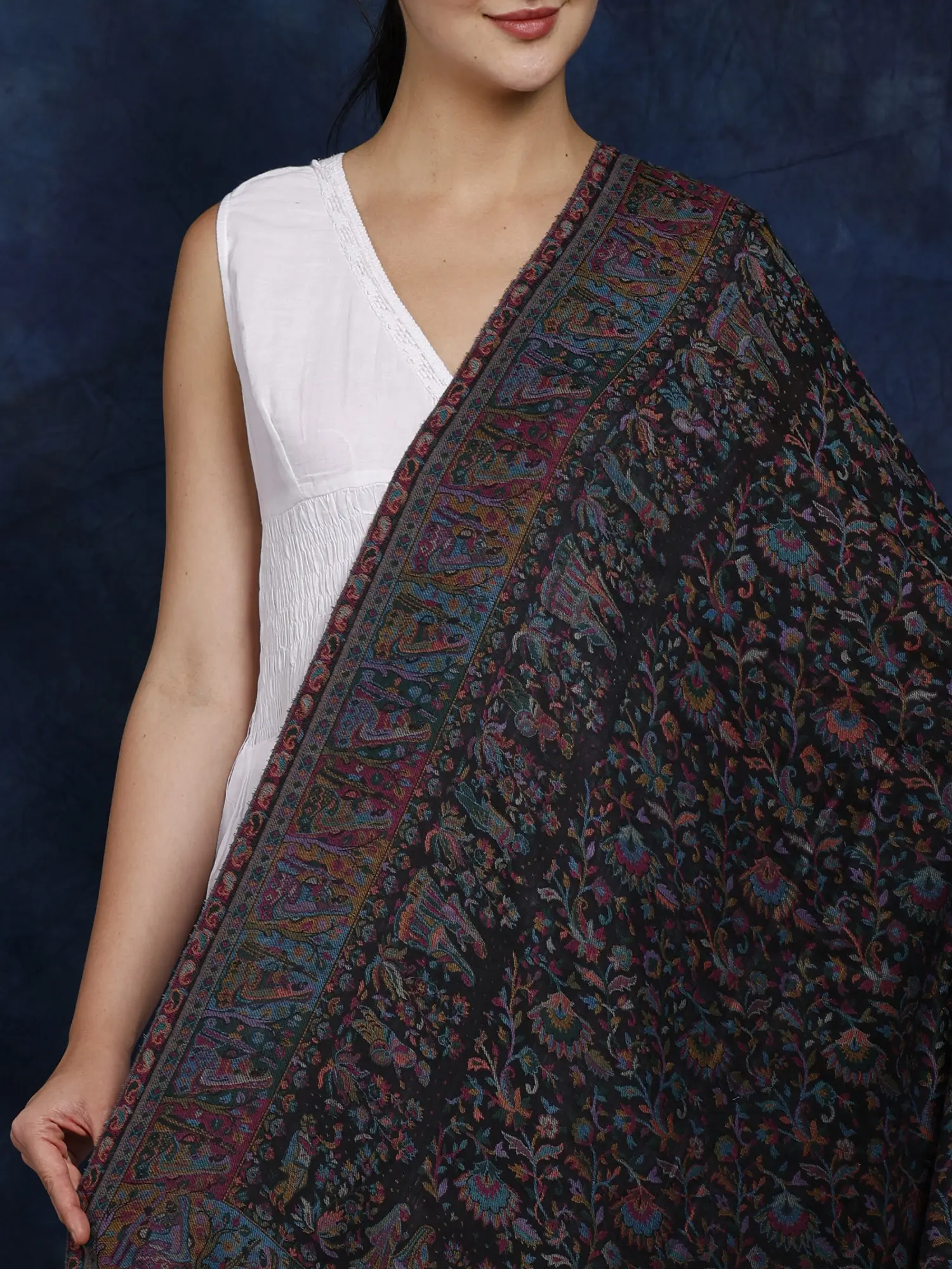 Kani Jamawar Wool Shawl From Amritsar with Multicolor Woven Flowers on All-Over