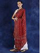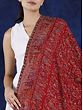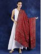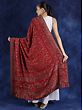 Karanda-Red Jamawar Wool Shawl from Amritsar with Aari Embroidery and Flowers