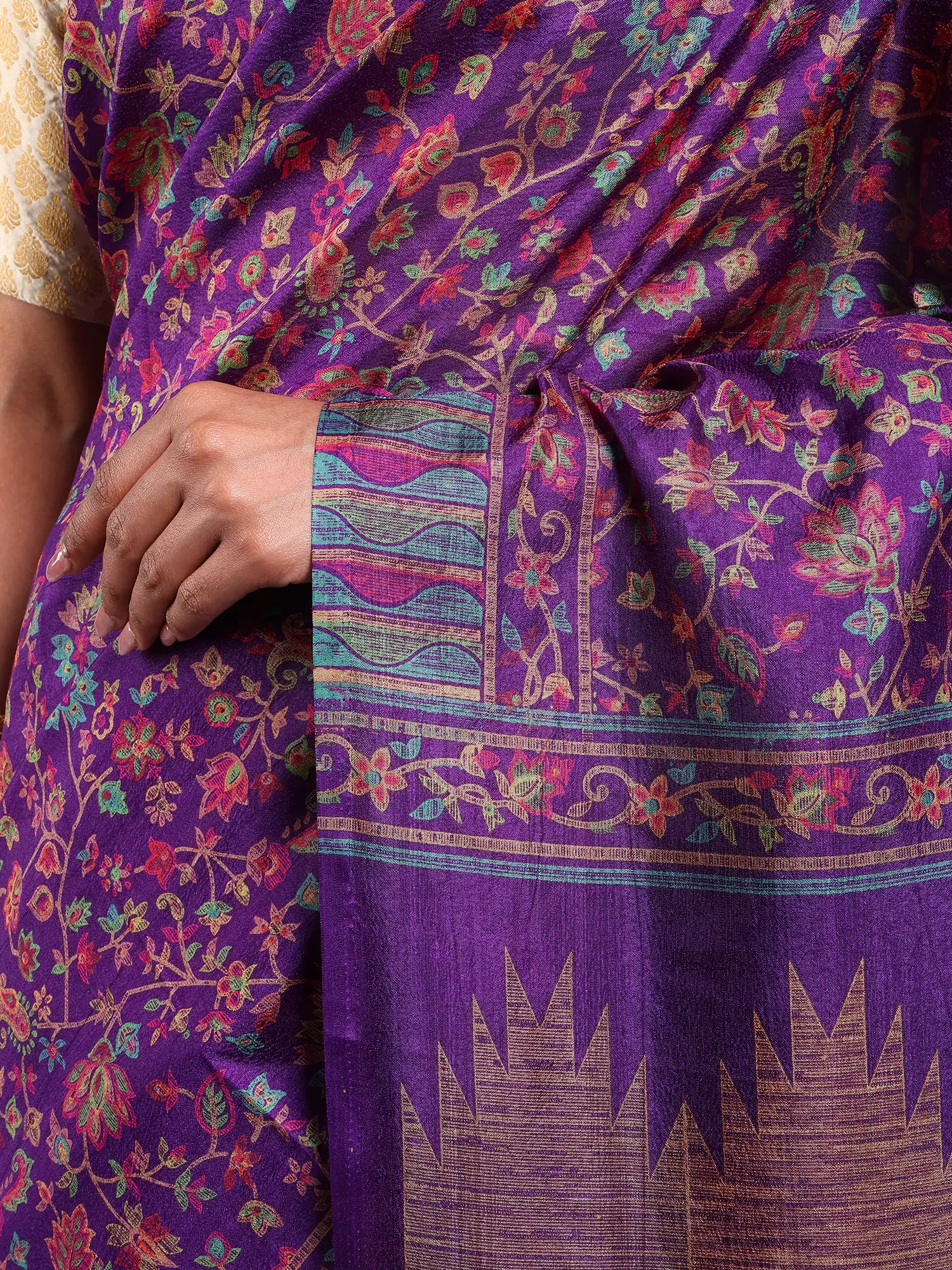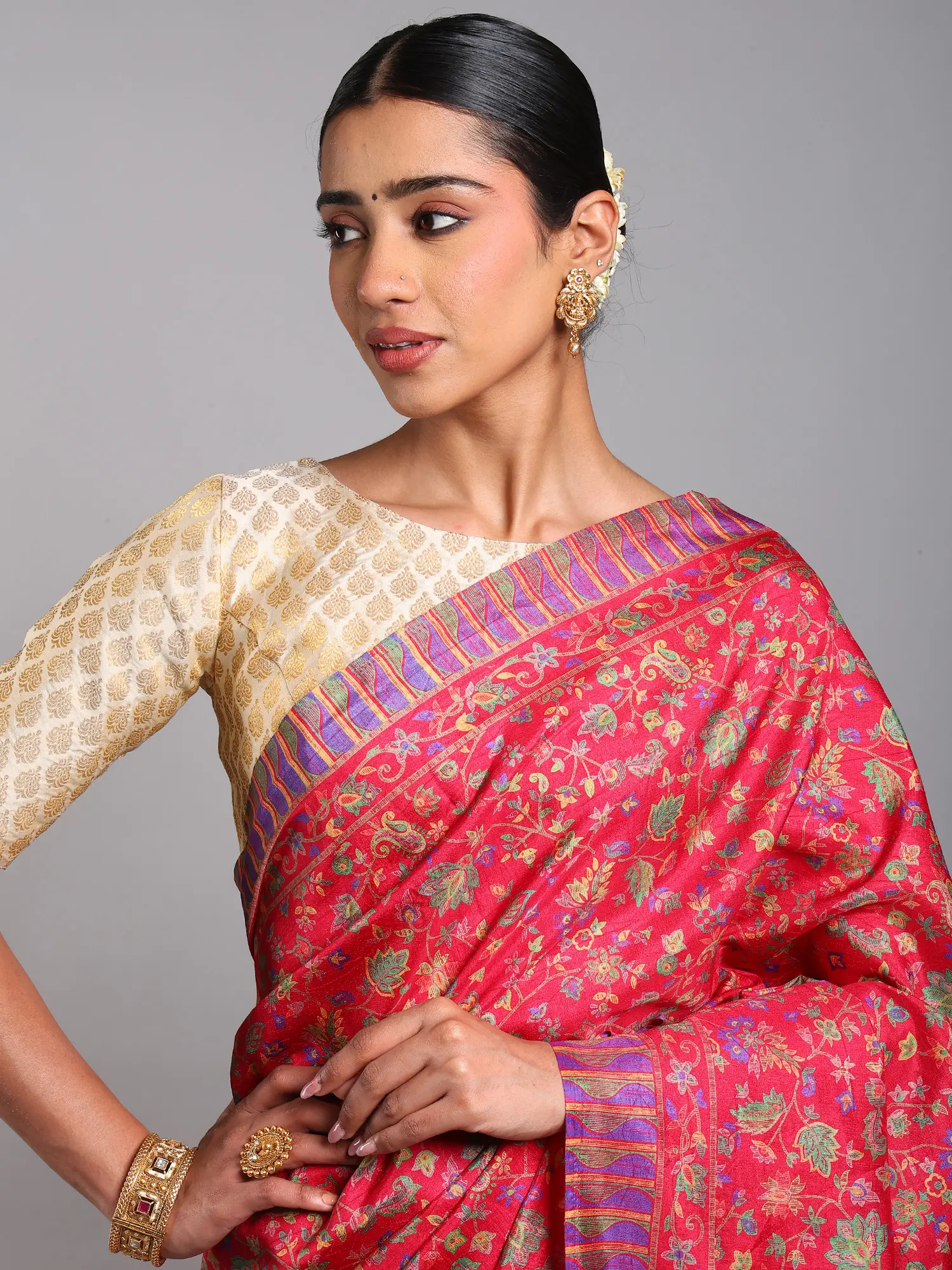 Kani Saree with Printed Multicolor Floral Paisley Vines