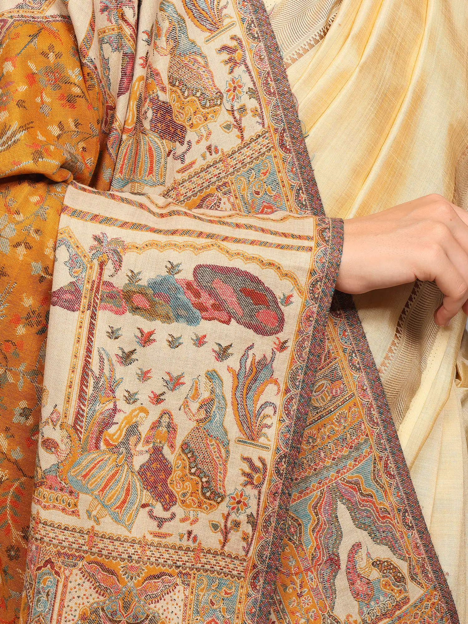 Pure Wool Kani Jamawar Shawl with Multicolor Thread Woven Mughal Pattern