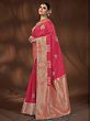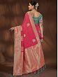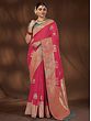 Banarasi Saree with All-over Zari Woven Bootis and Floral Vine Contrast Border-Pallu