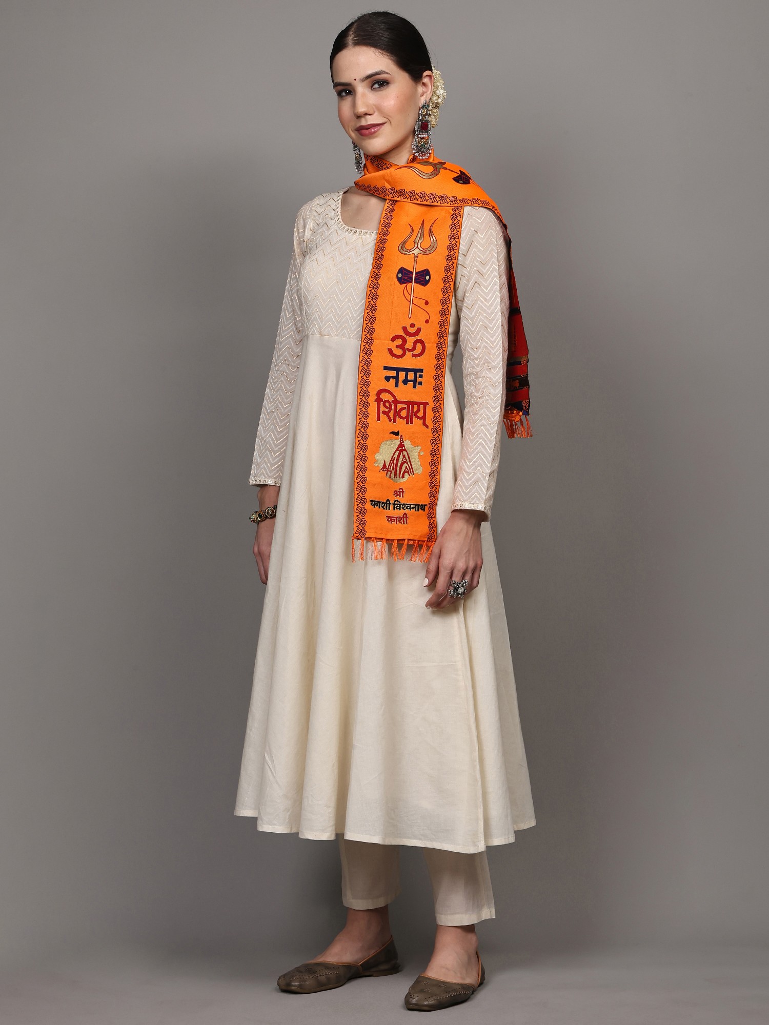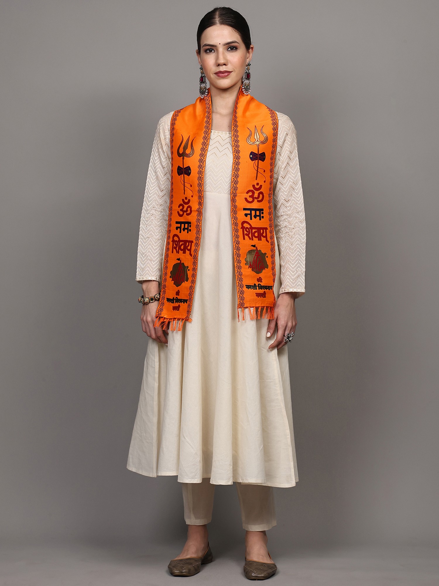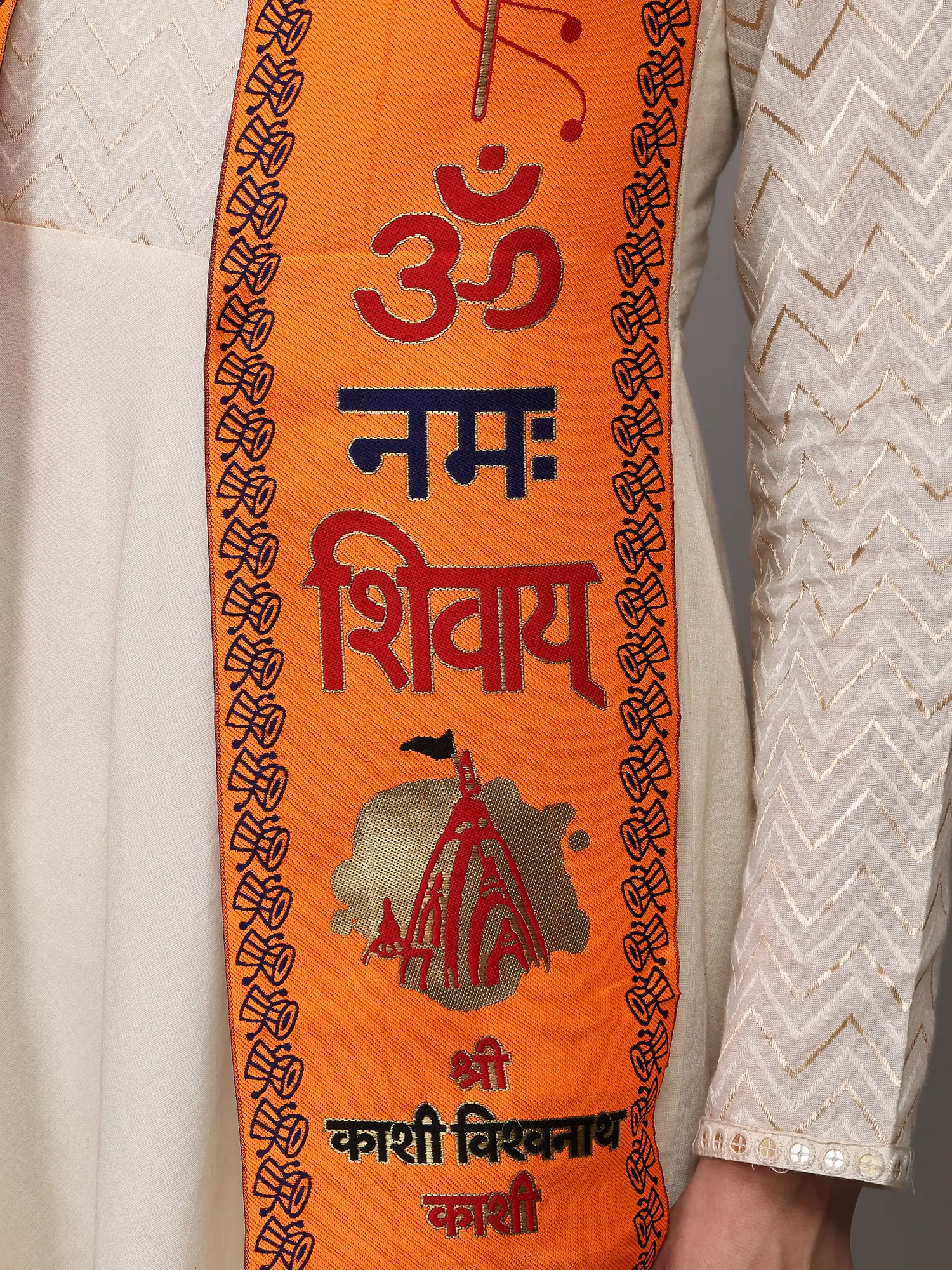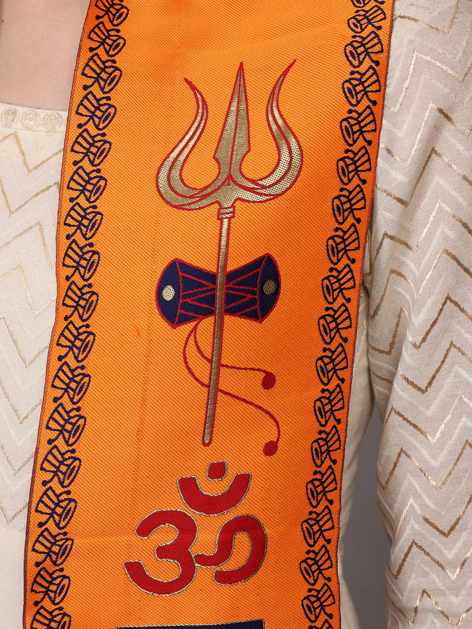 Orange and Yellow Lord Ganapati Prayer Scarf with woven Shri Ganeshay Namah Mantra (Unisex)