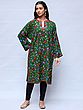 Black Wool Phiran with Aari Embroidered Flowers and Paisleys