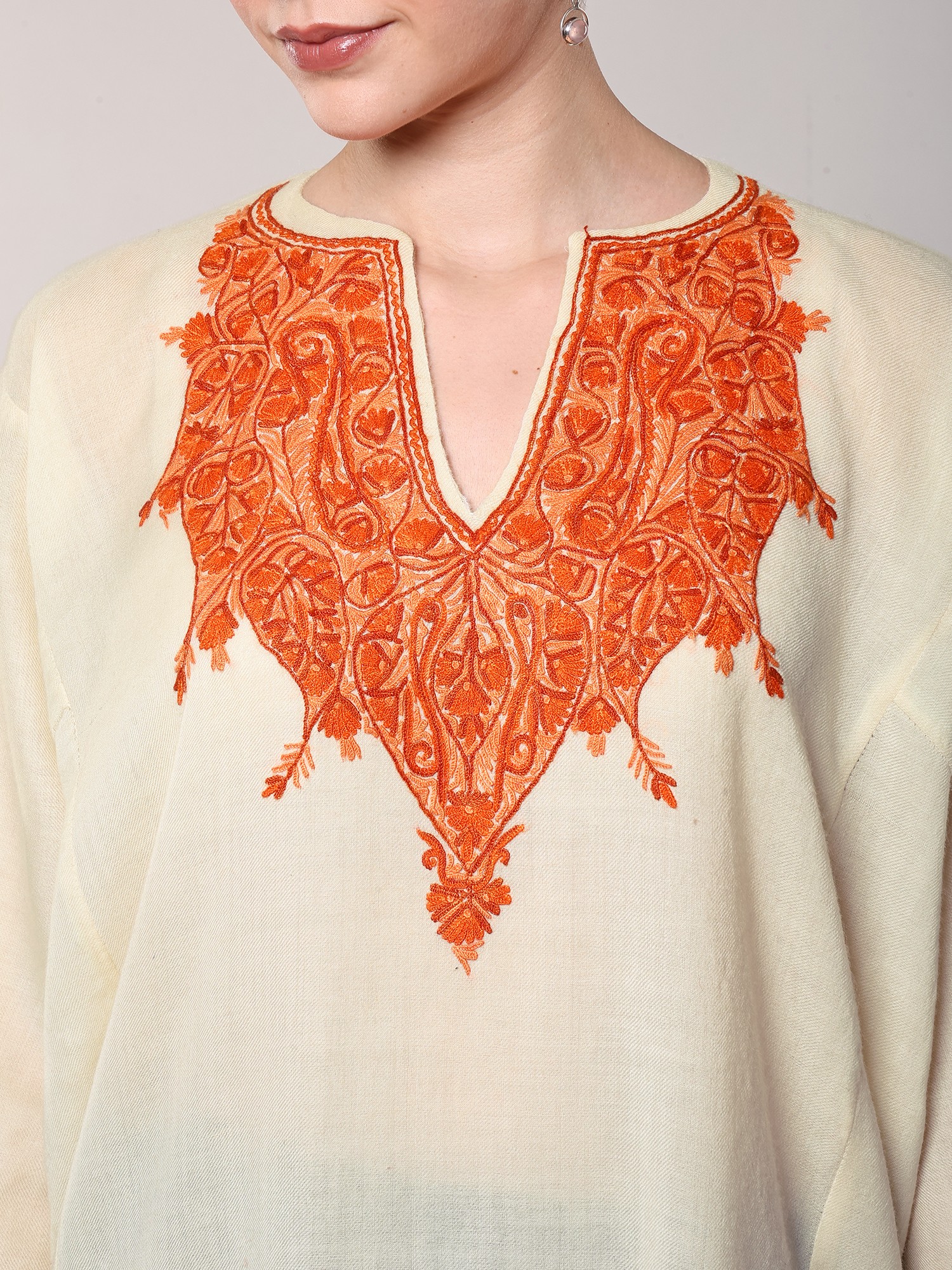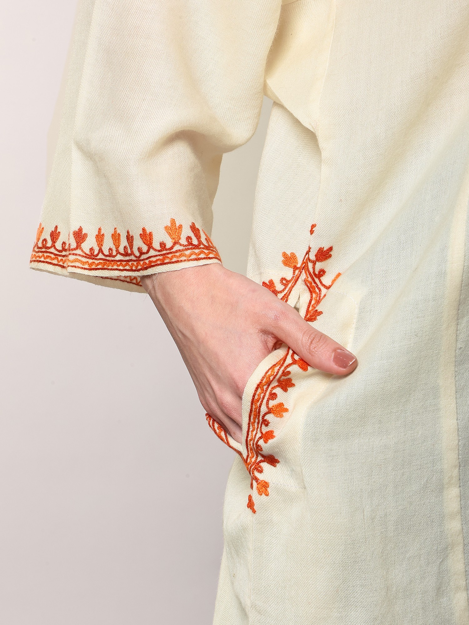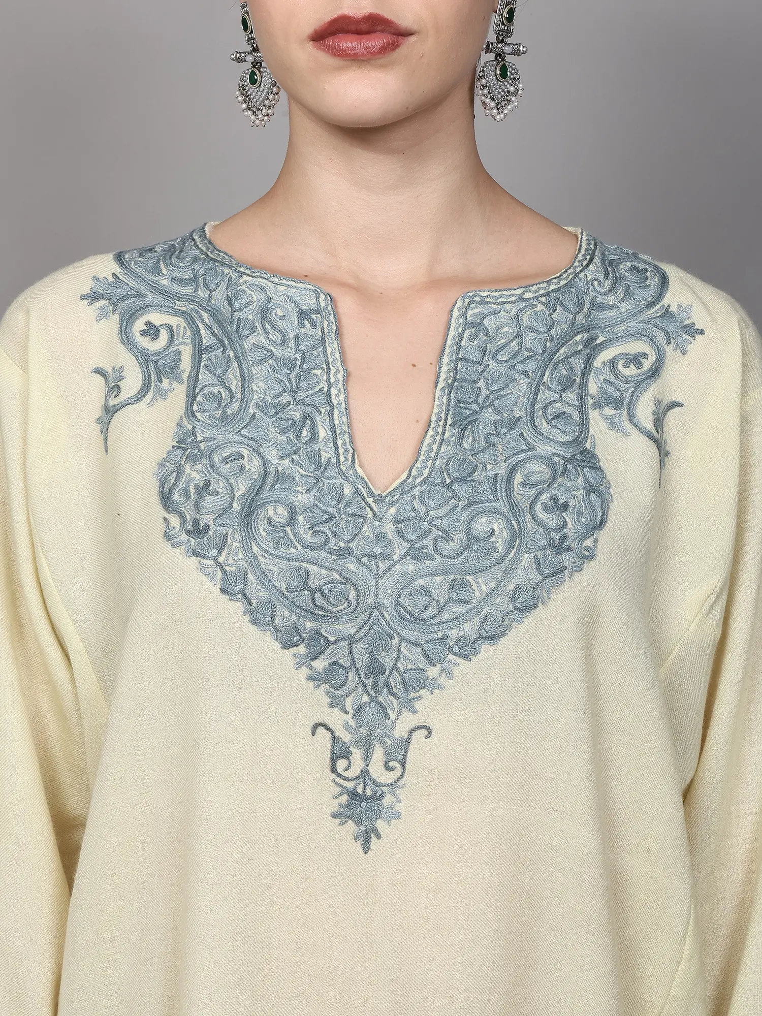 Kashmiri Phiran with Aari Embroidered Paisleys and Floral on Neck