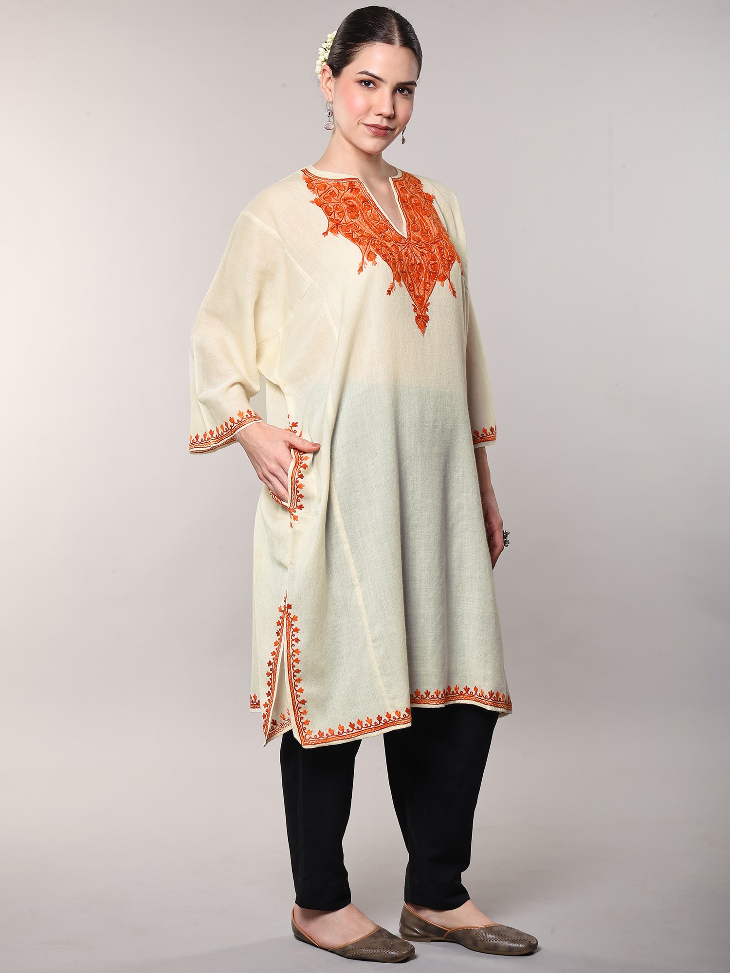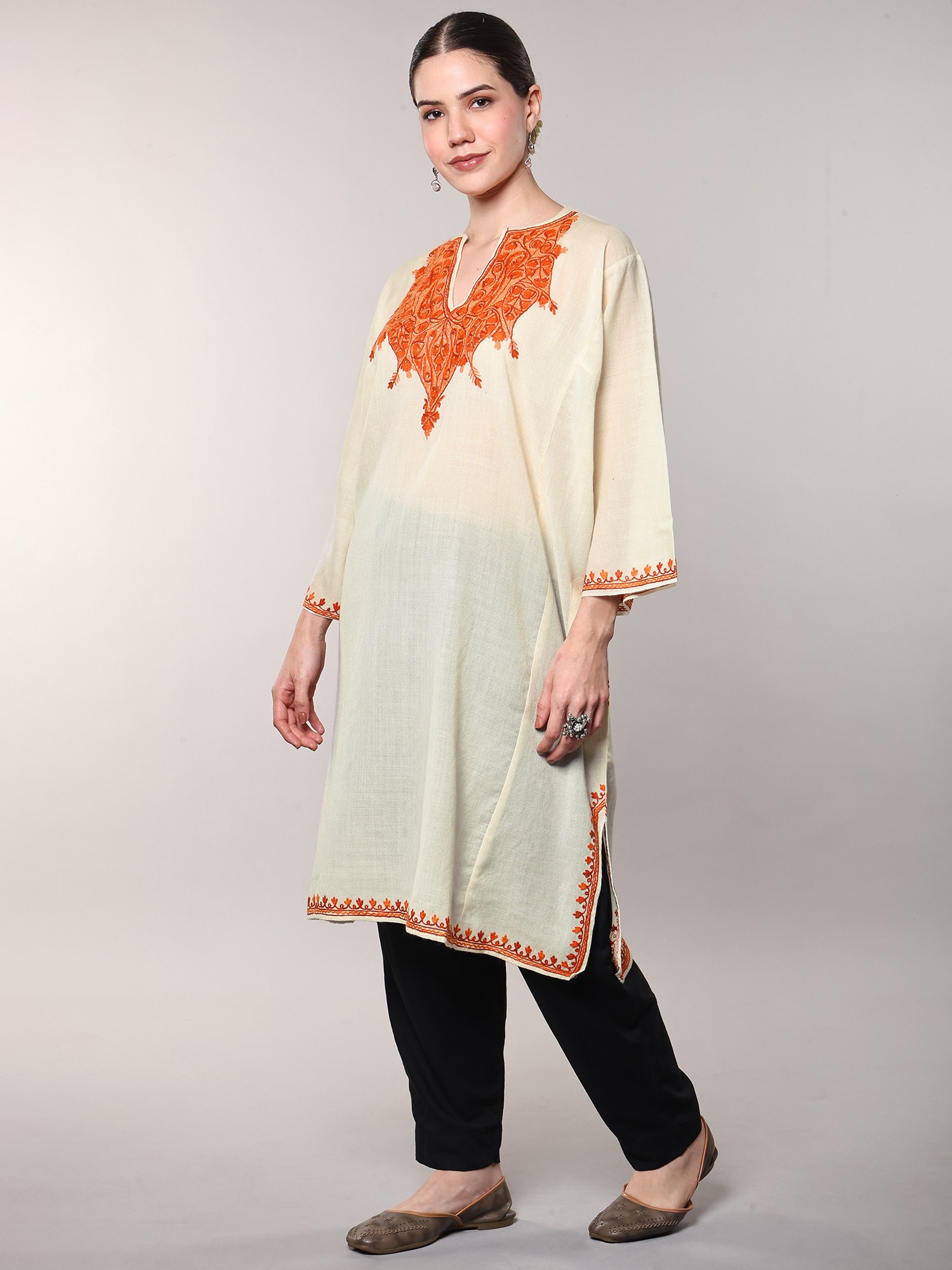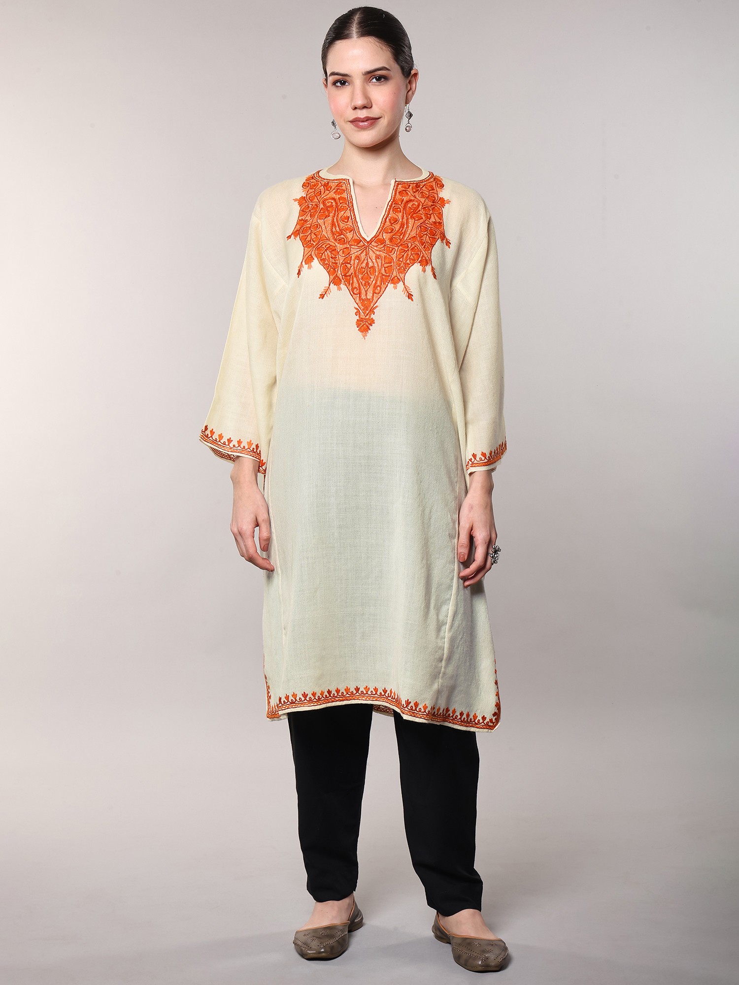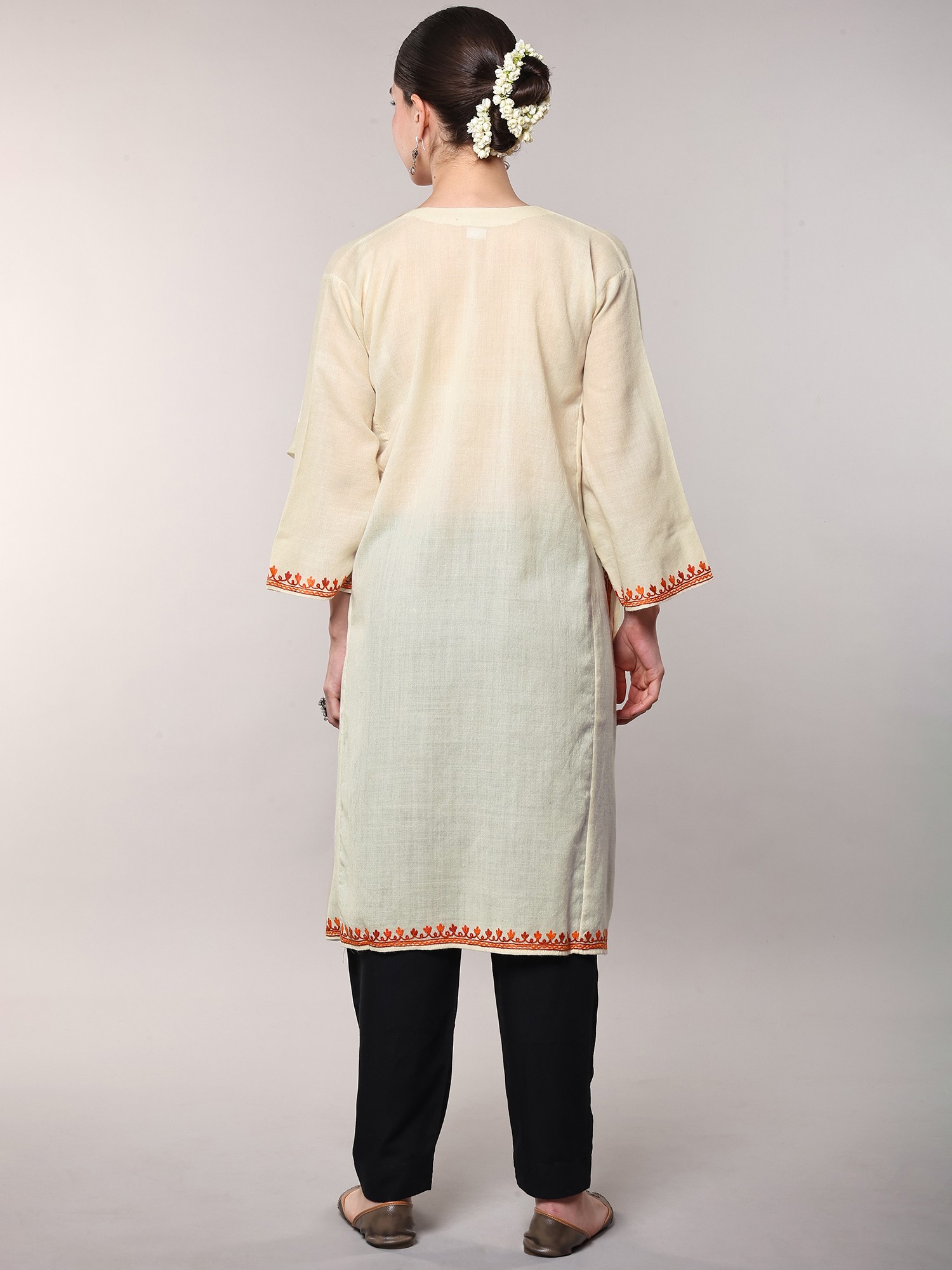 Kashmiri Phiran with Aari Embroidered Paisleys and Floral on Neck