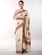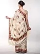 White Georgette Saree with Aari Embroidered Floral Border and Anchal
