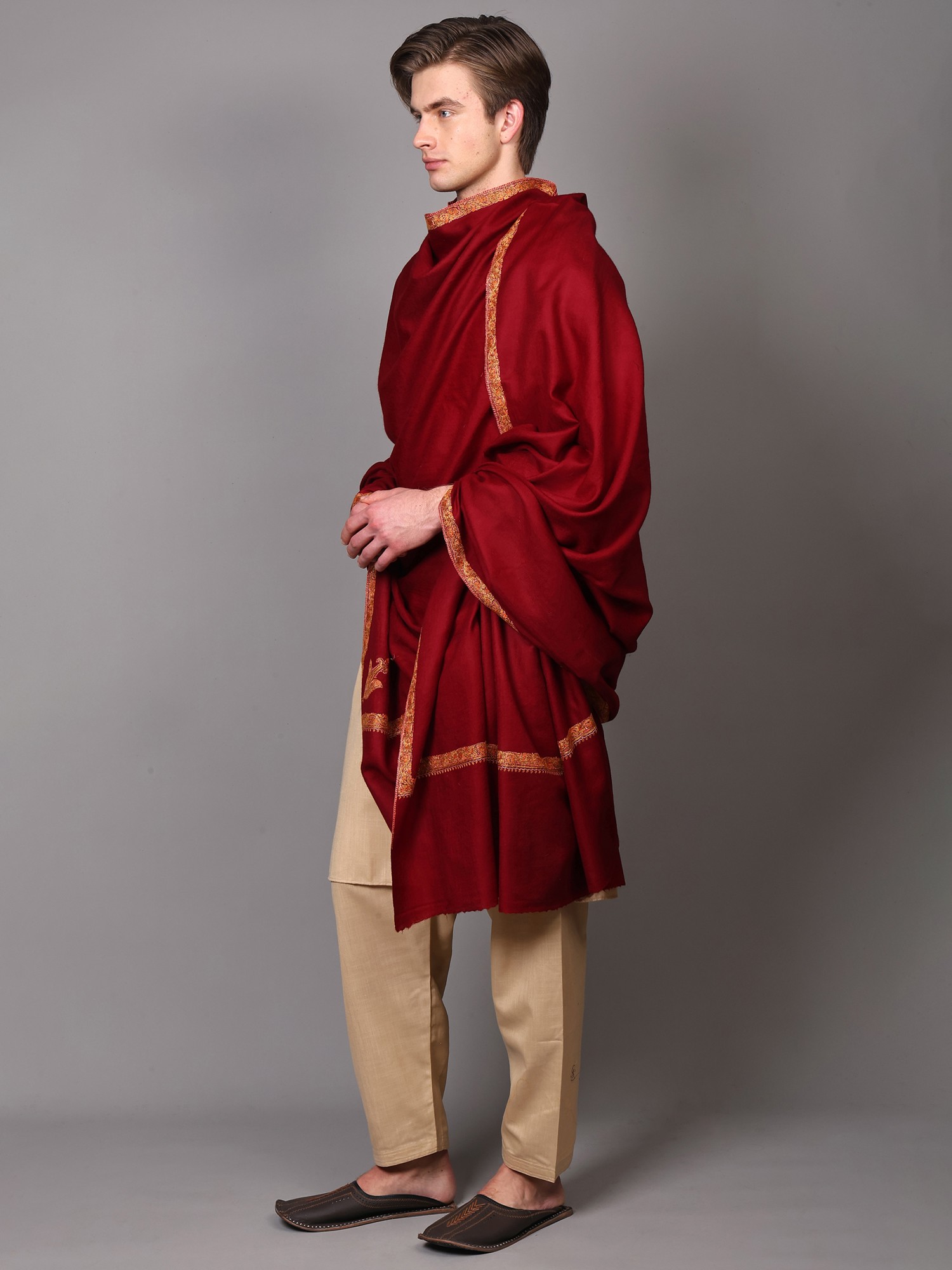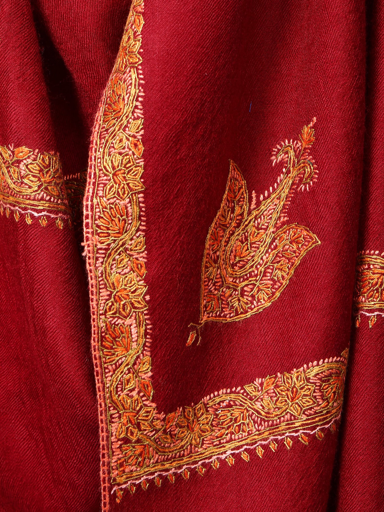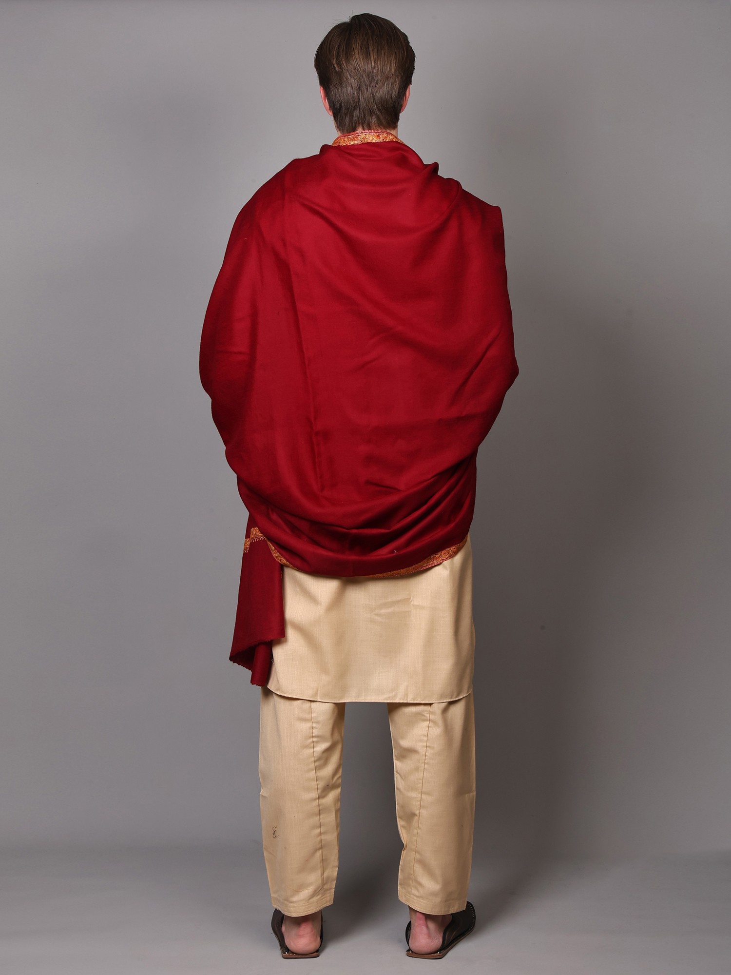 Plain Kashmiri Kingri Shawl with Sozni Hand-Embroidery on Border