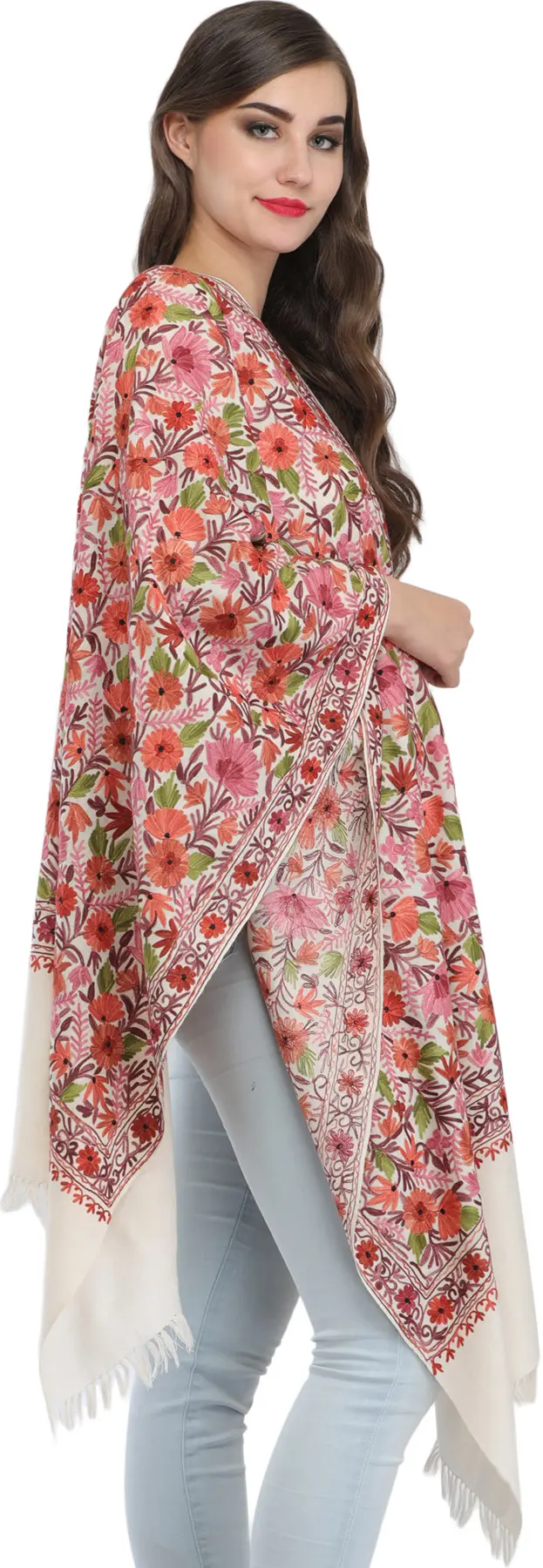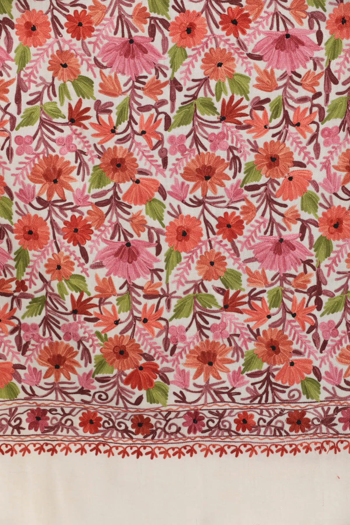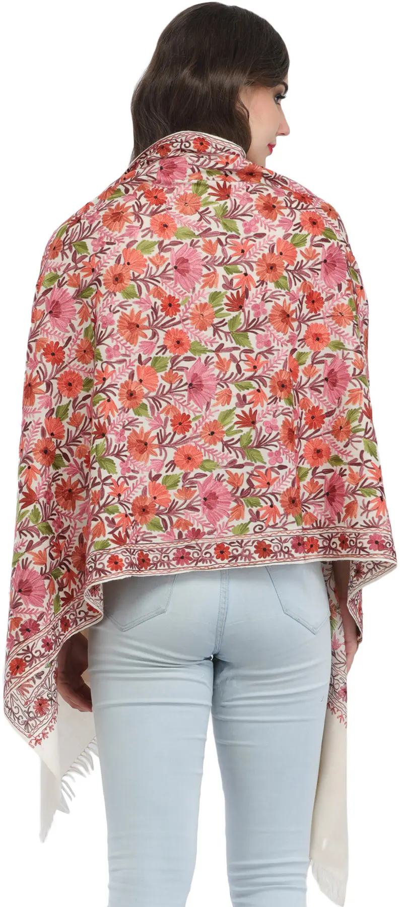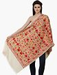Kashmiri Designer Stole with Hand Embroidered Flowers All-Over
