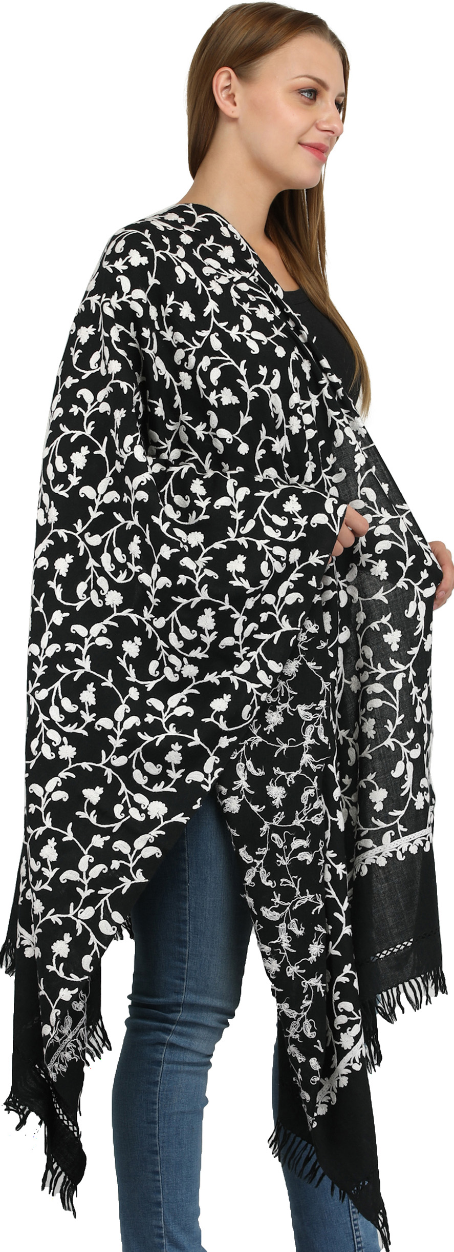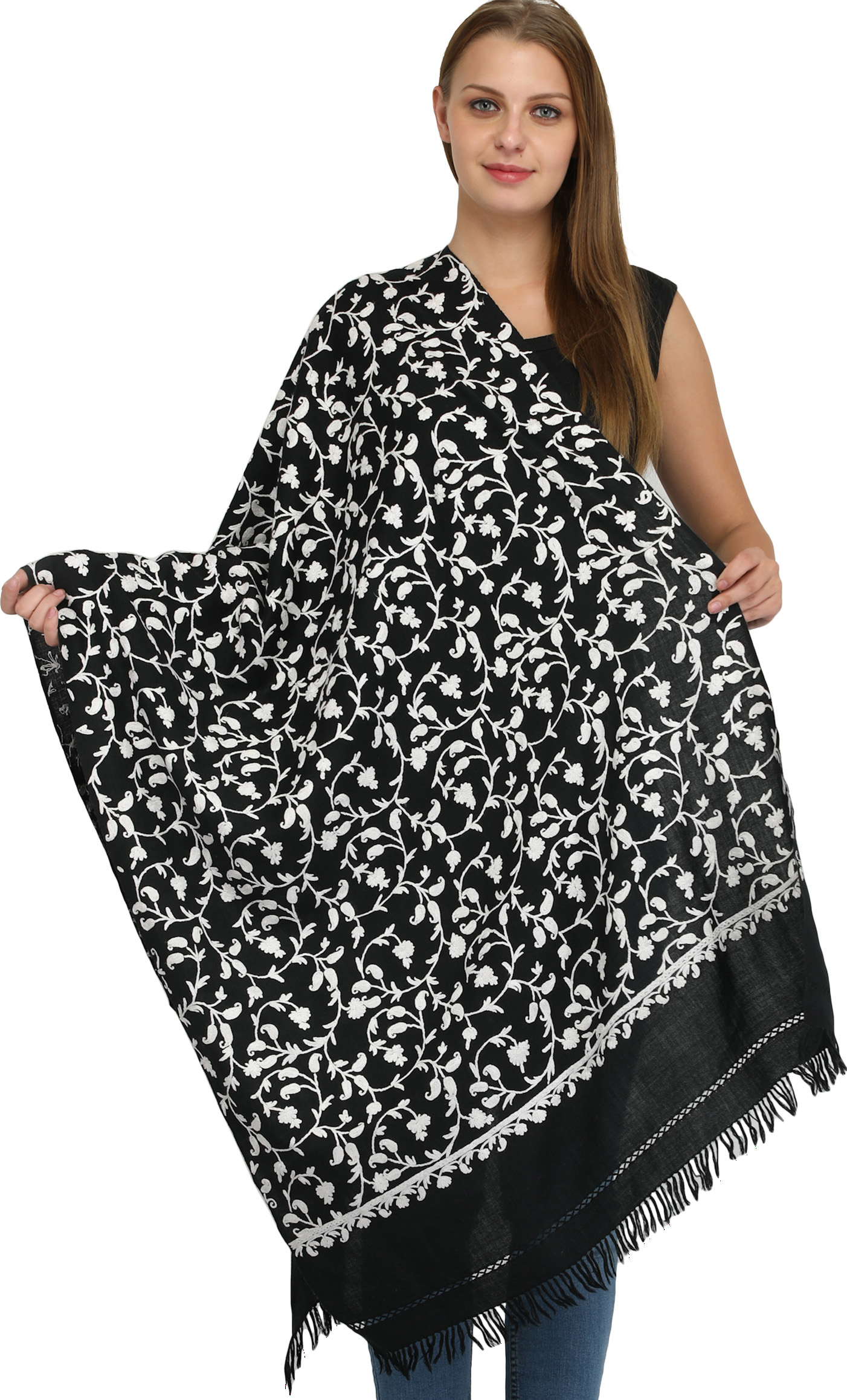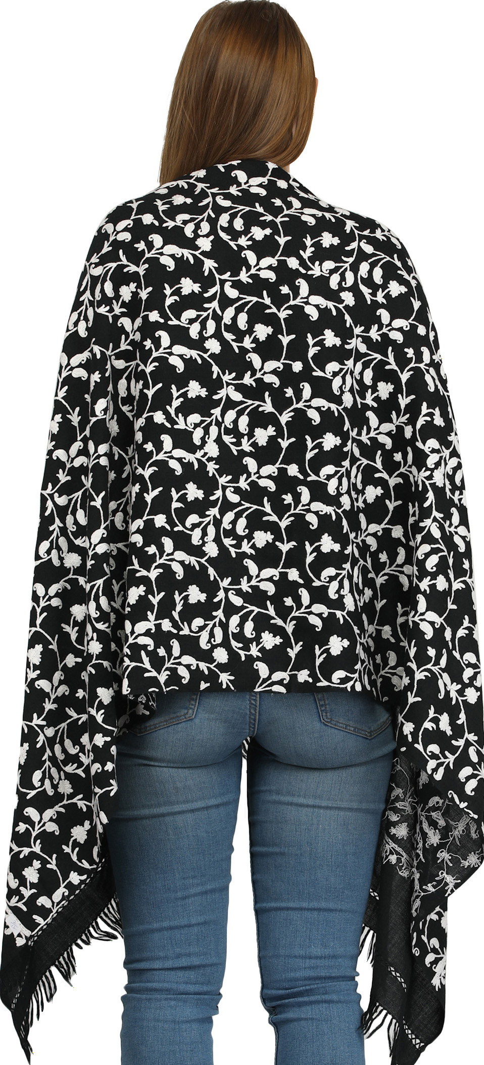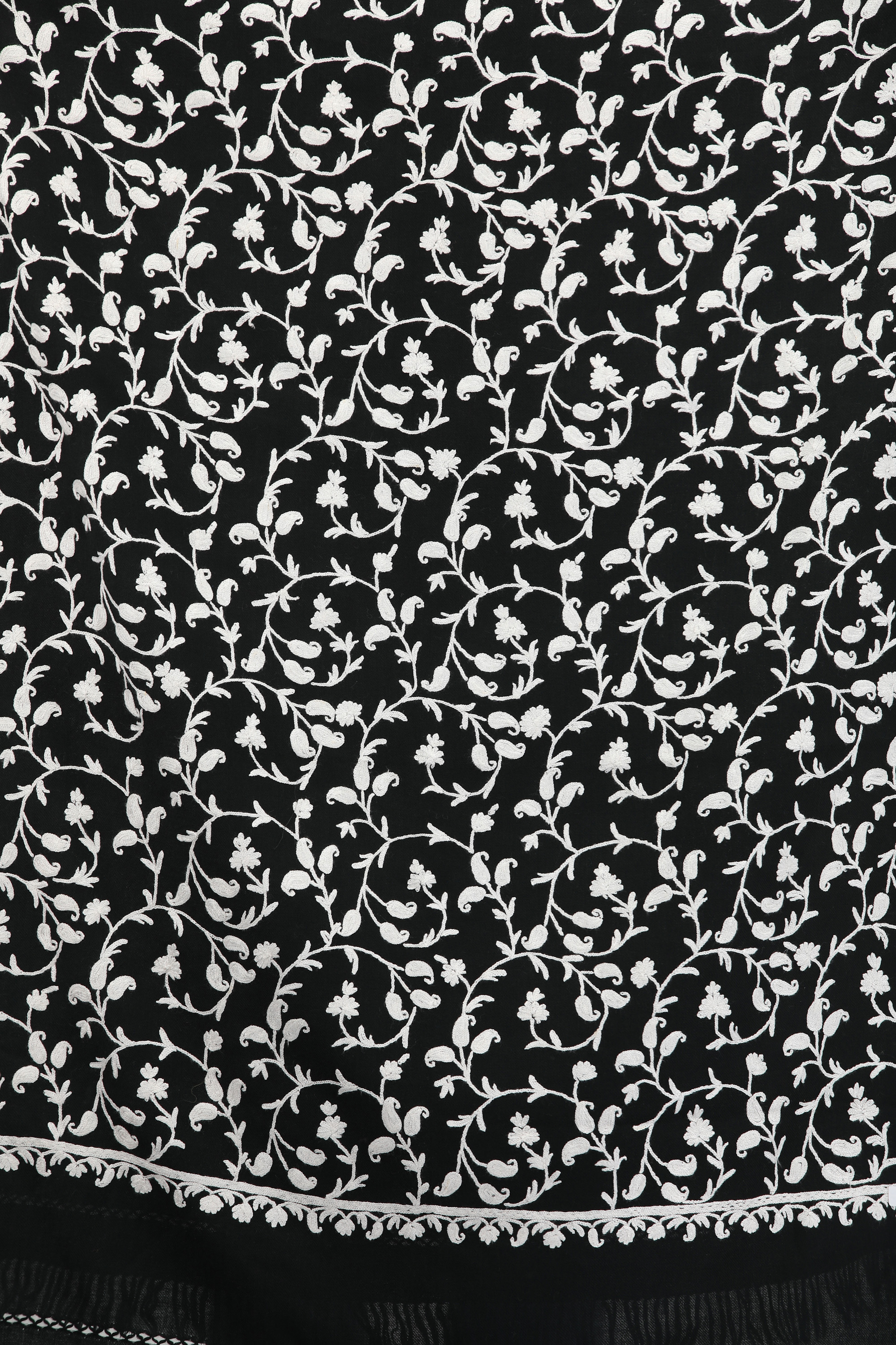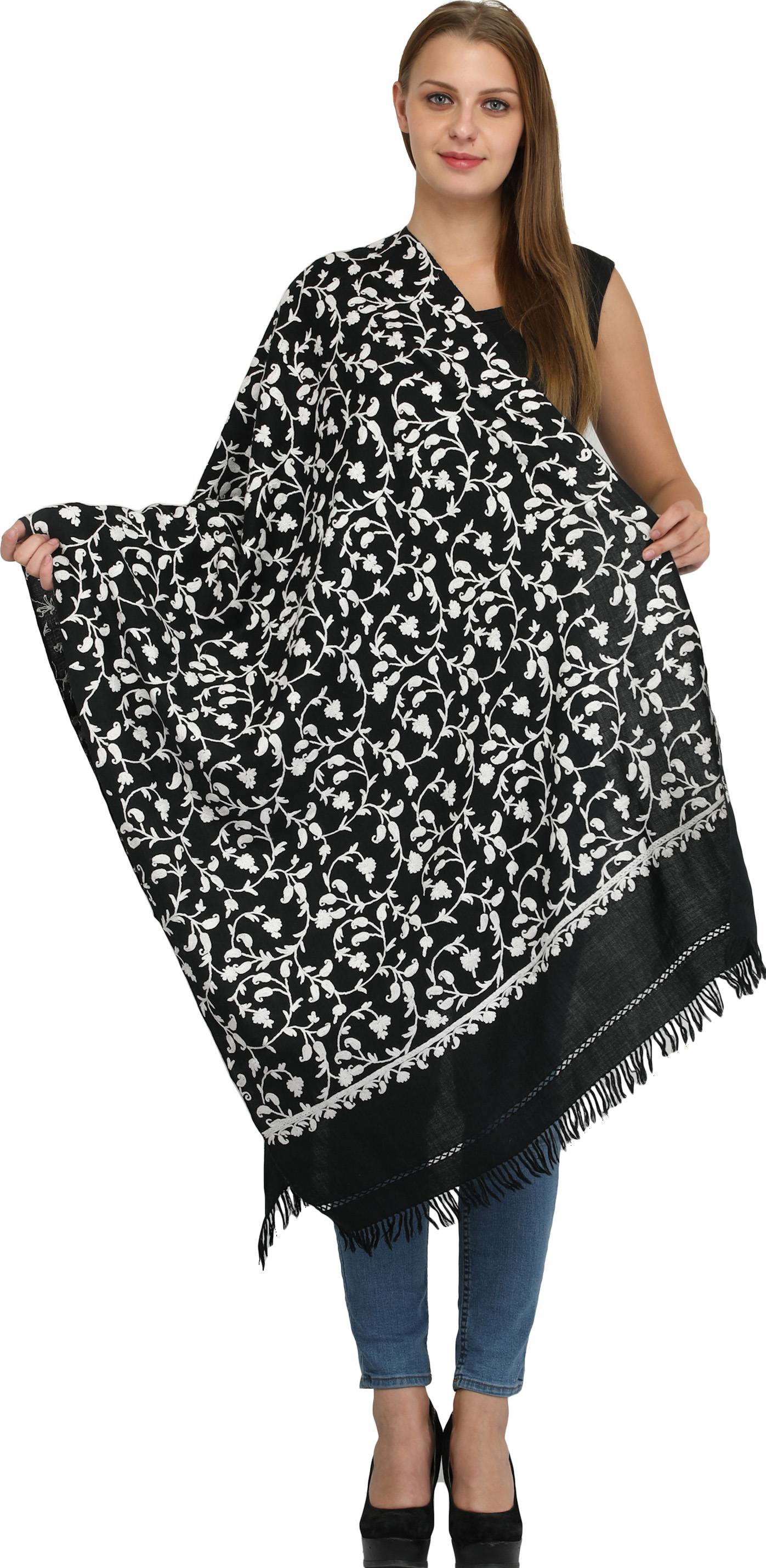 Our Kashmiri stole, is a testament to the opulence of the region. Made from luxurious Pashmina wool, it features intricate Aari-embroidered paisleys, meticulously created by hand. The Aari embroidery technique is a time-honored art that dates back centuries in the Kashmir Valley. These paisley designs, originally Persian in origin, have evolved over time, symbolizing grace and elegance. Their timeless appeal remains in harmony with today's fashion trends. The stole's soft feel, rich colors, and artisanal workmanship make it a precious accessory, seamlessly blending tradition with contemporary style.