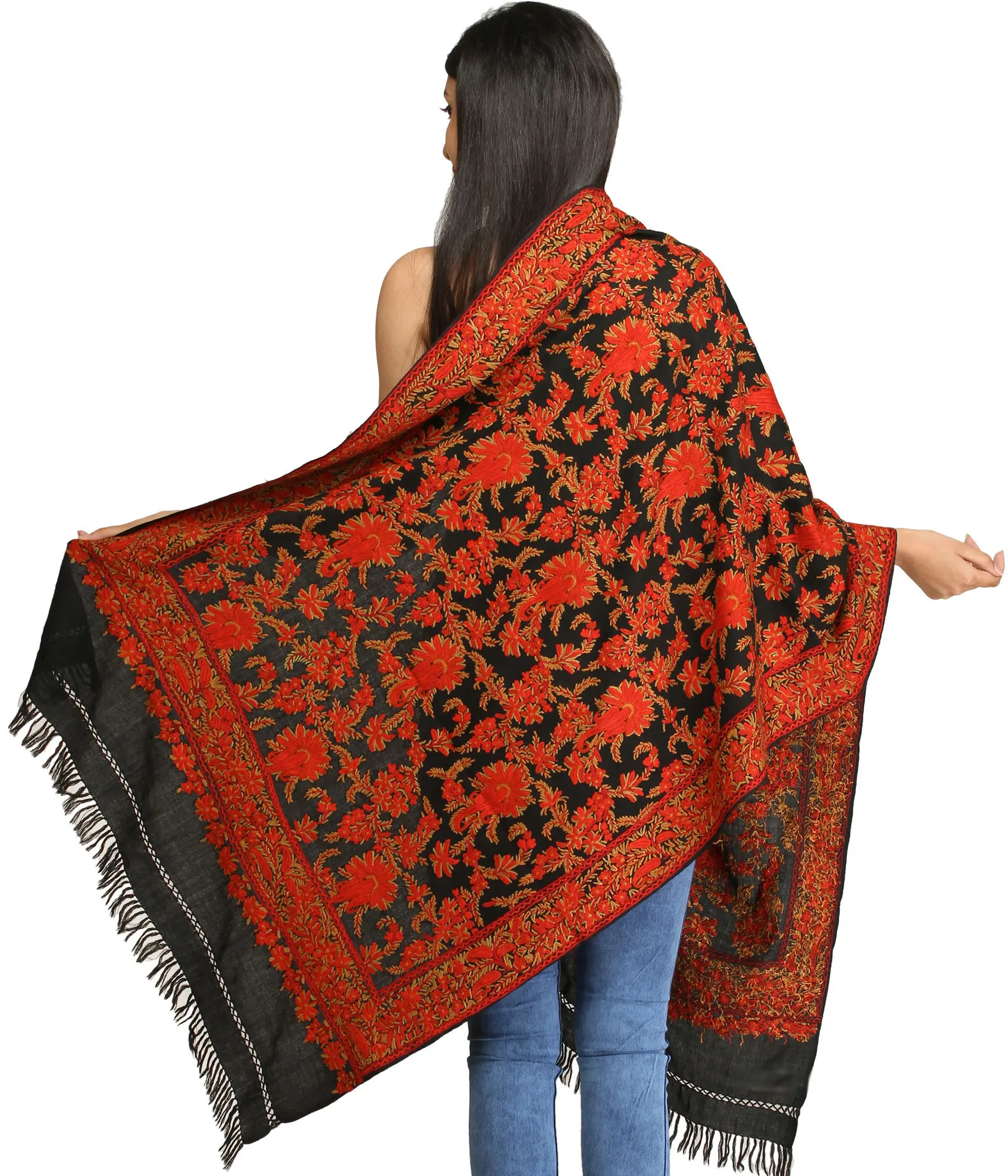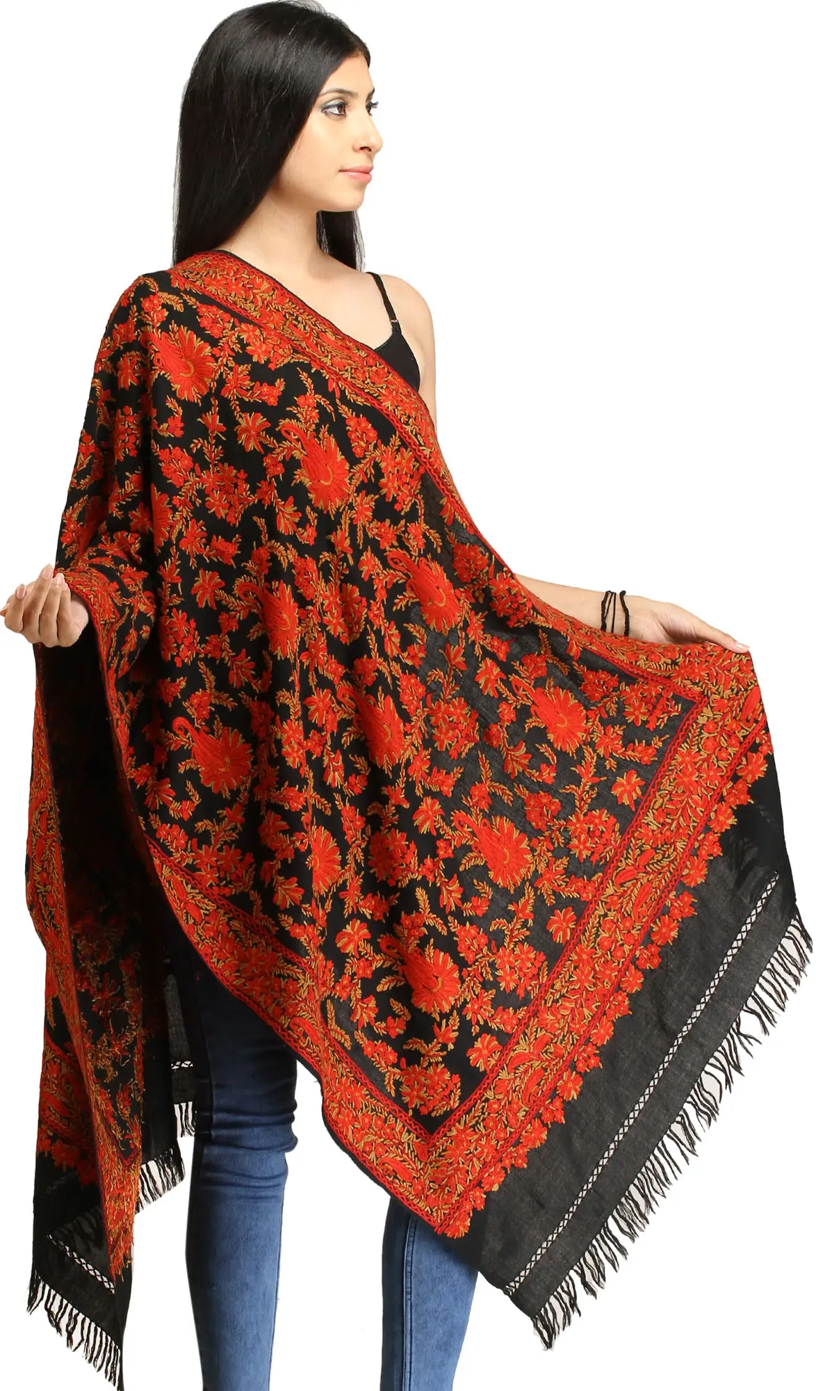 Kashmiri Stole with Aari Floral-Embroidery by Hand