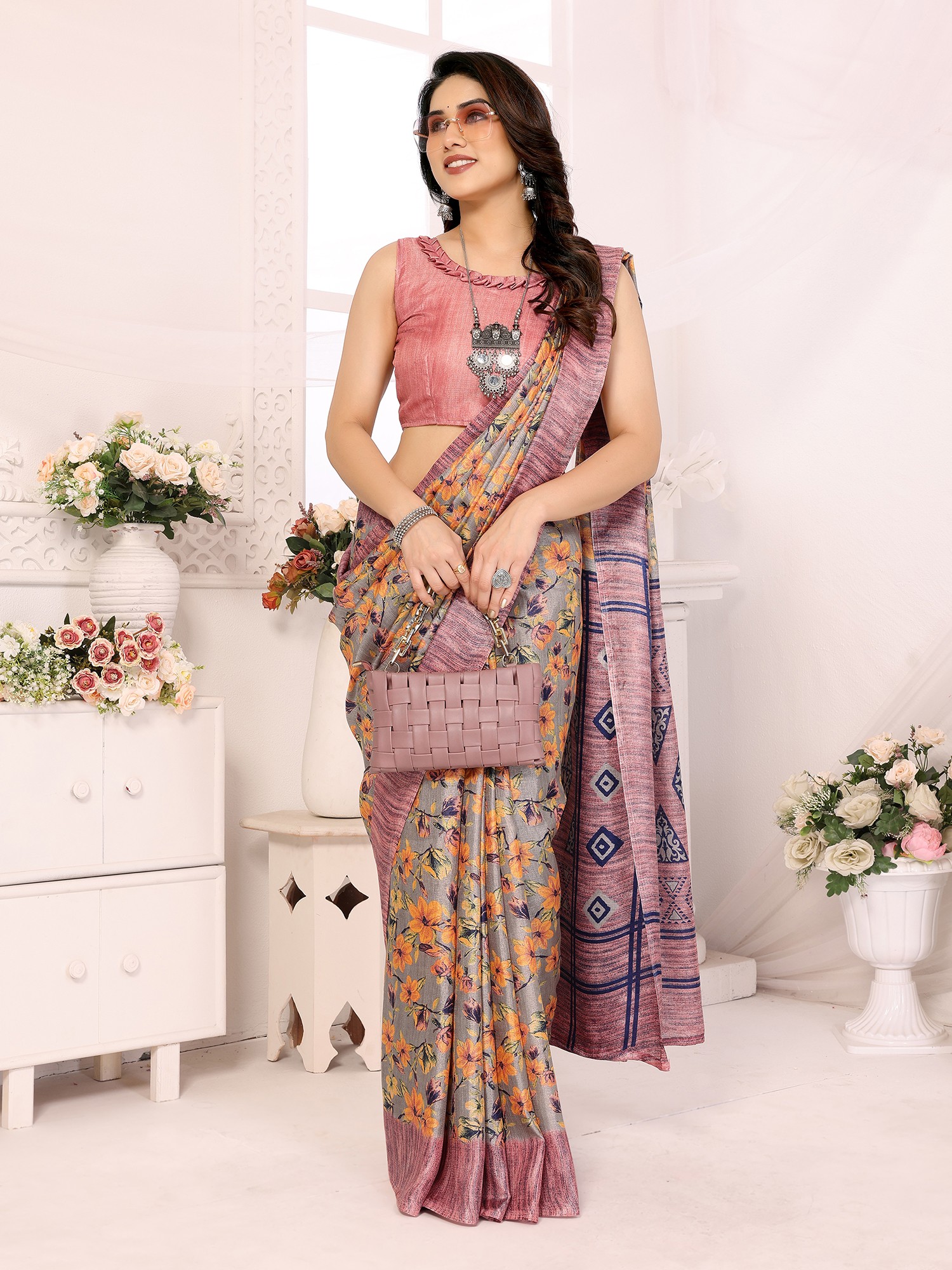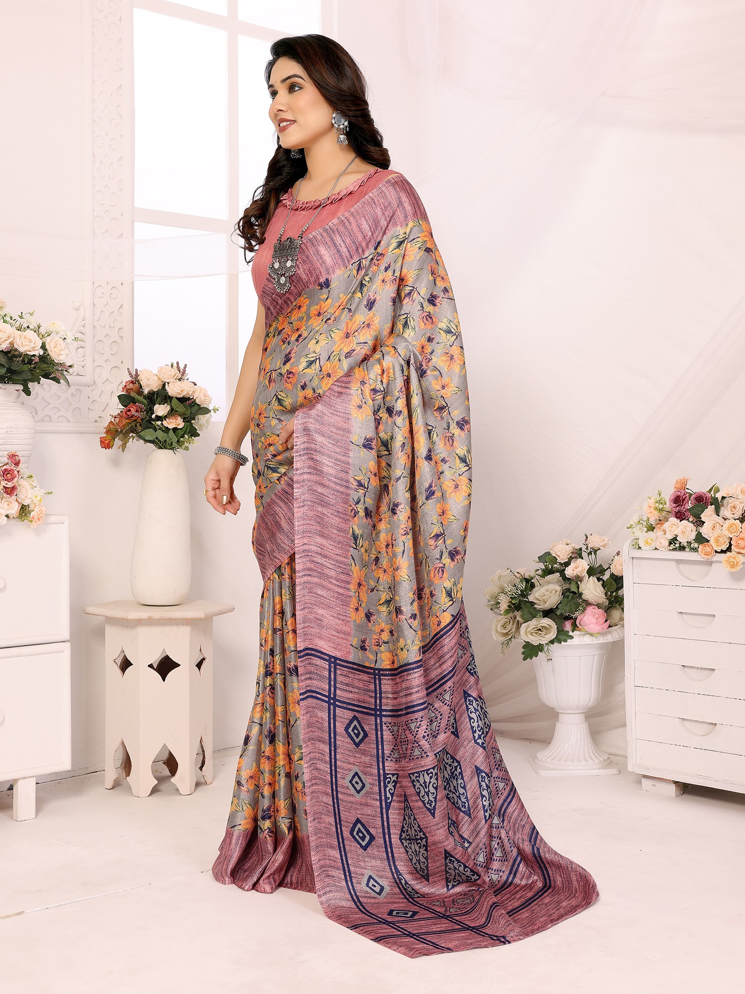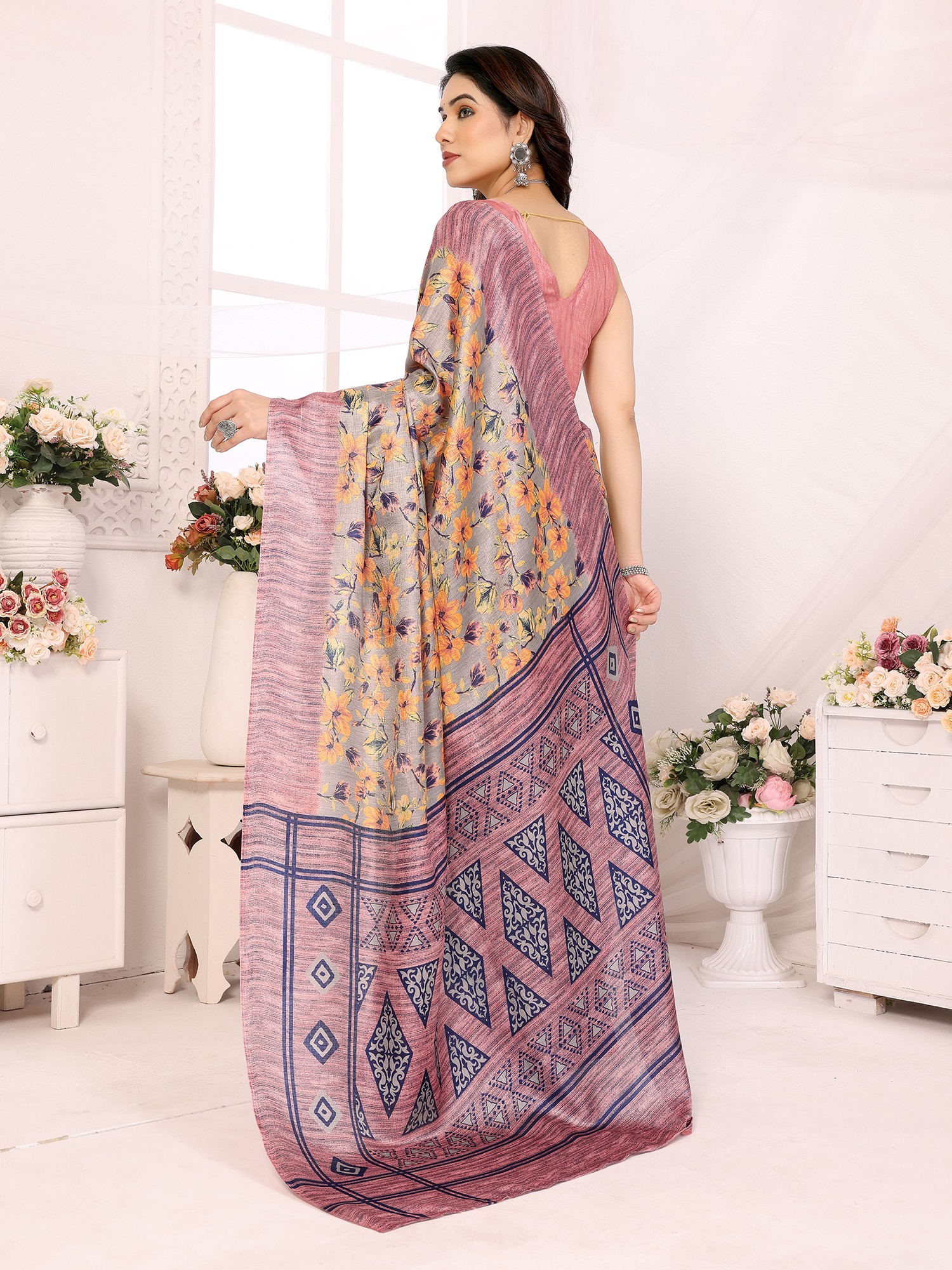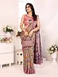 African-Violet Pure Silk Zari Motifs Kanjivaram Saree with Contrast Golden Border