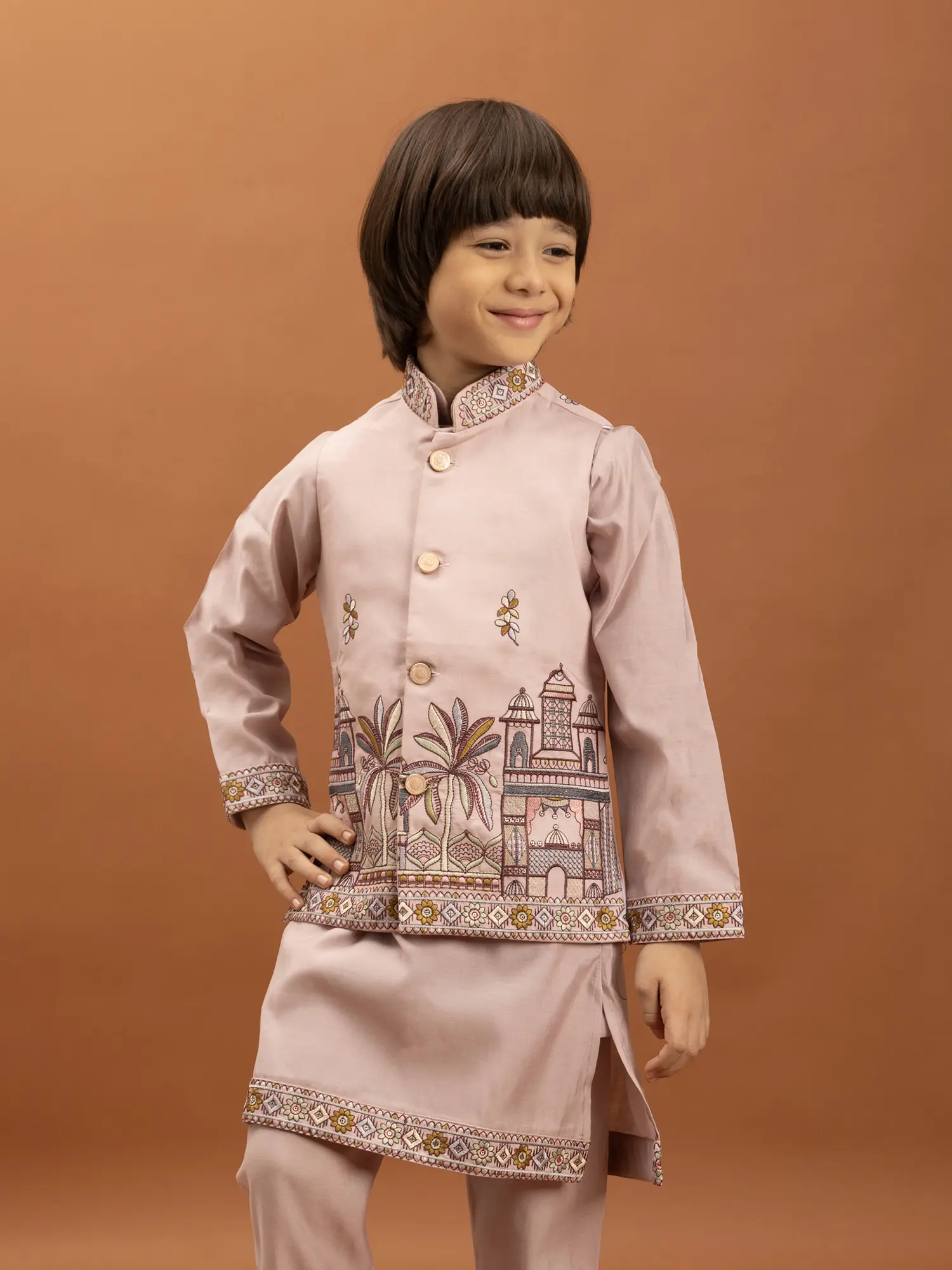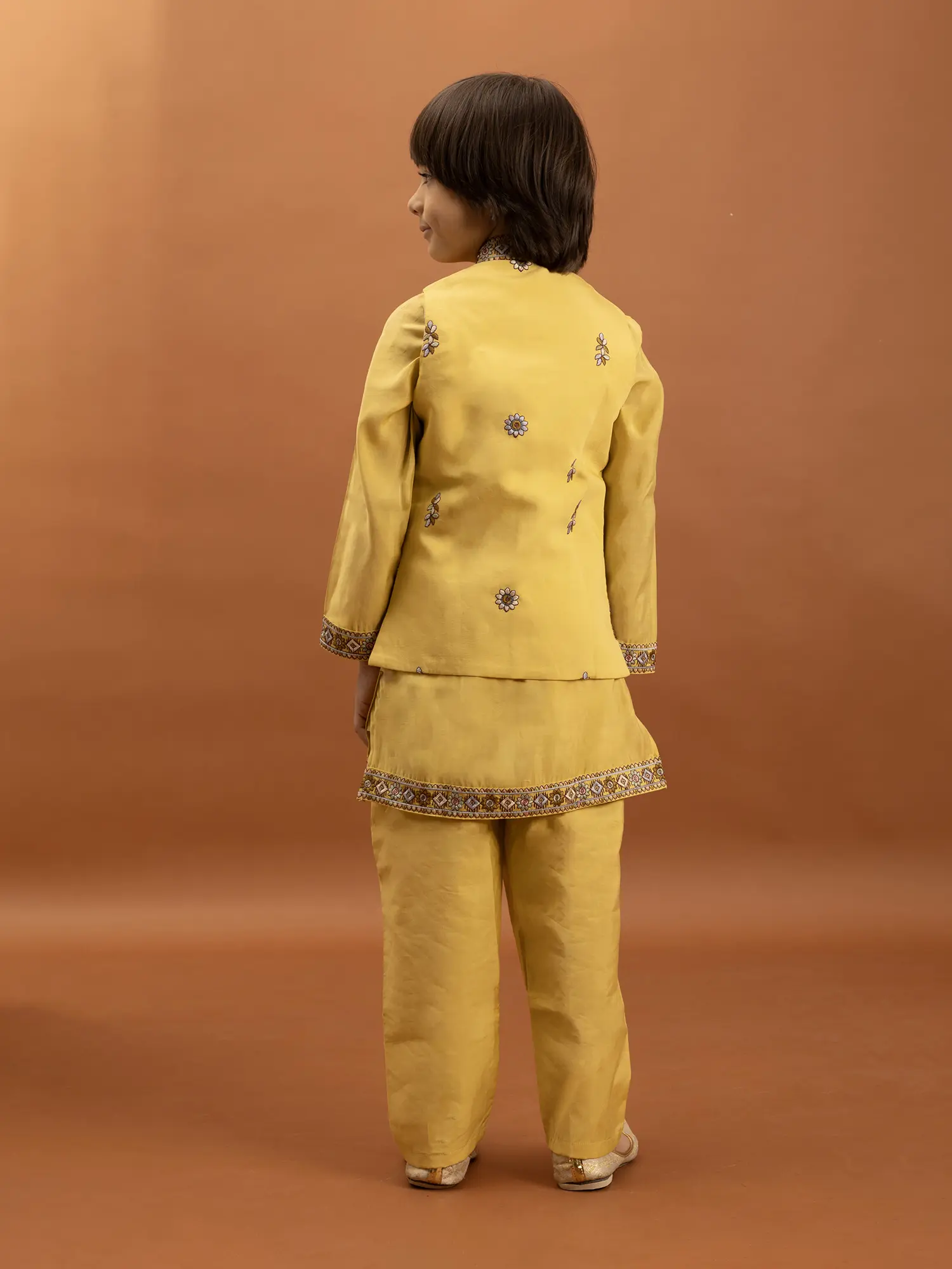 Kids Viscose Silk Kurta Set With Embroidered Koti Jacket For Boys Ideal For Wedding Functions Festive Celebrations