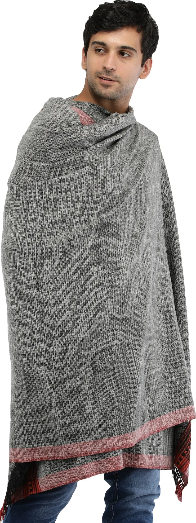 Woodland-Gray Kullu Palla Shawl with Kinnauri Woven Triple Border (Unisex)