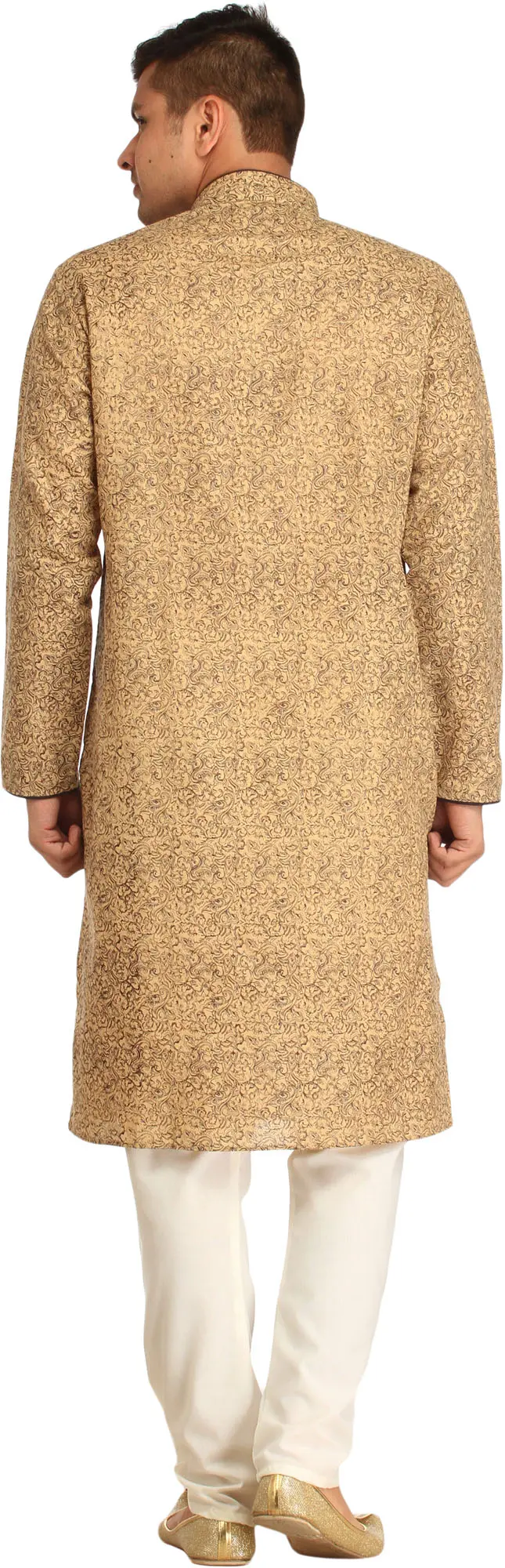 Elevate your ethnic wardrobe with this sophisticated kurta pajama set, designed for the modern man who appreciates classic style with a touch of contemporary flair. Crafted from pure cotton, this ensemble promises unparalleled comfort and breathability, making it an ideal choice for both casual gatherings and festive occasions. The rich, earthy tones of the fabric serve as a perfect canvas for the intricate paisley print that adorns the kurta, adding a subtle yet striking visual appeal.