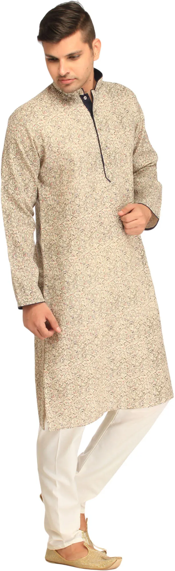 Adorned with mesmerizing printed paisleys and delicate piping, this pure cotton kurta pajama, crafted for comfort and style, embodies timeless tradition with a contemporary twist. The airy pure cotton fabric provides a luxury sensation against your skin, making it appropriate for every occasion, from celebratory festivities to casual gatherings.