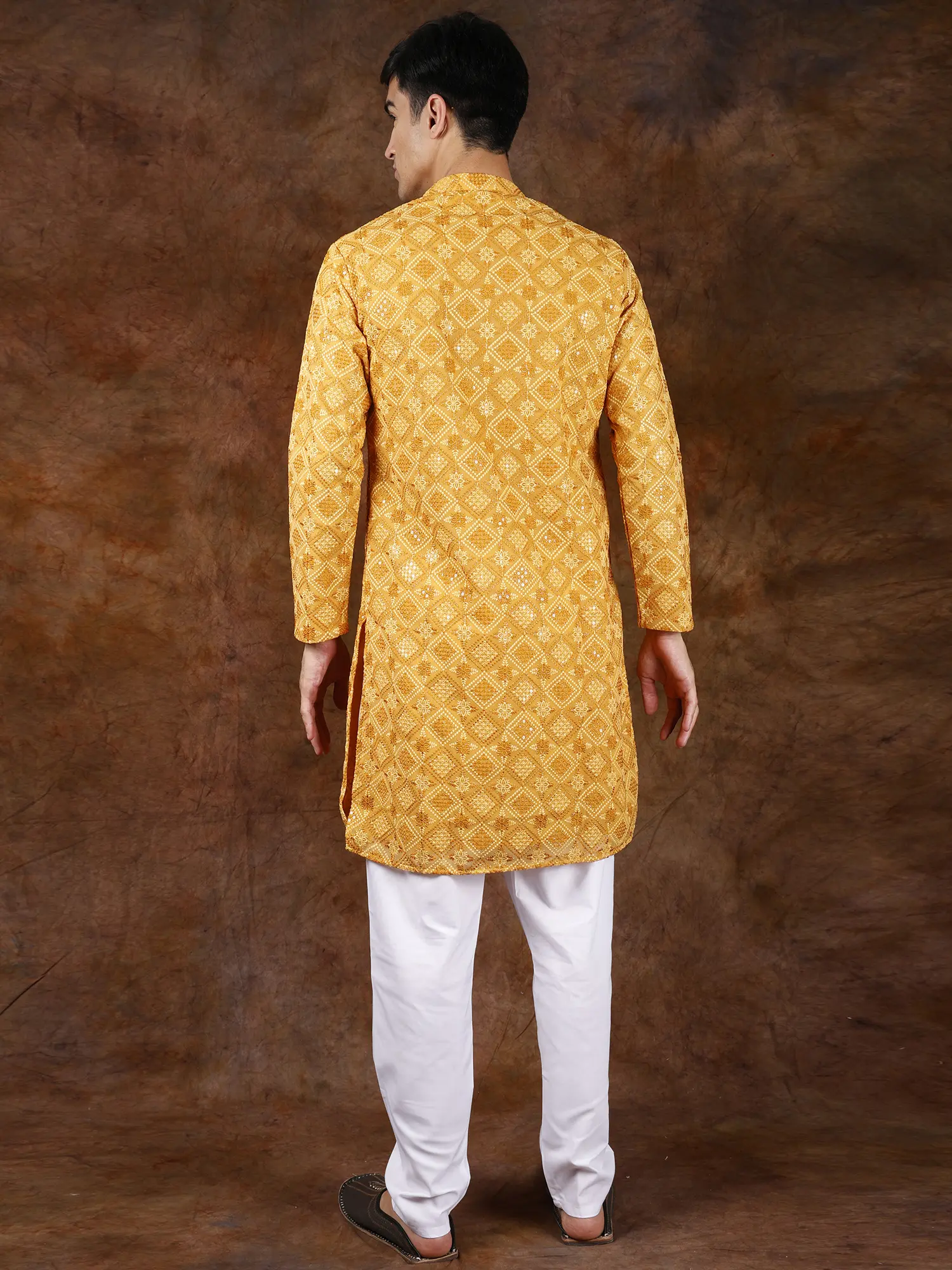 Pastel Kurta Pajama Set with Chikankari Embroidery All-Over