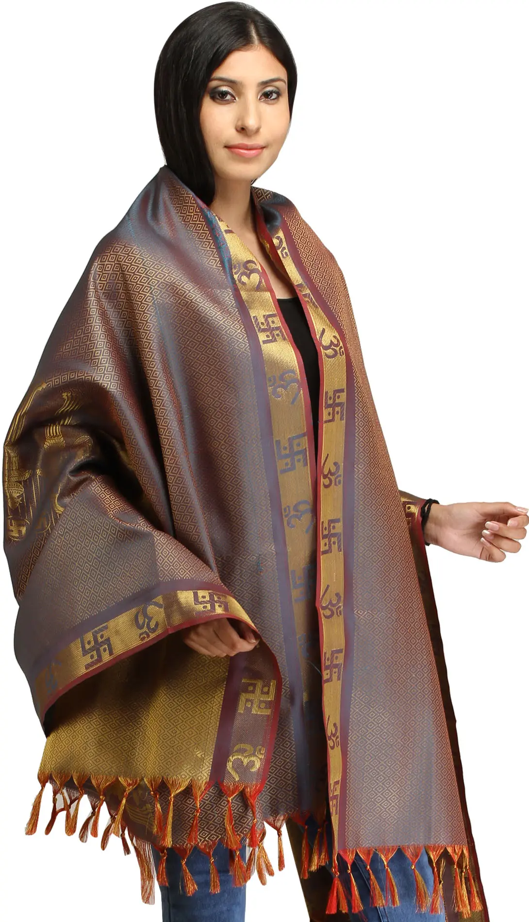 Prayer Shawl with Zari and Thread Embroidered Dual Color Om Motif