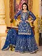 Chinon Elegant Sequins And Embroidery Work Party Wear Kurti Sharara Set With Dupatta