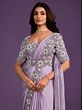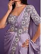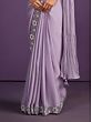 Get a lovely lavender saree in your wardrobe to experience femininity and elegance that is always stylish. This designer saree is made with soft crepe satin silk that drapes charmingly.
