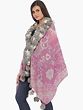 Lavender-Herb Jamawar Wrap with Faux-Fur Collar and Woven Flowers