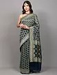 Black-Olive Handloom Saree from Paramakudi with Woven Pair of Peacocks Border and Stripes Pallu