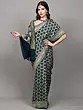 Bristol-Blue Bootis Woven Saree with Lotus Flower Border and Contrast Stripe Pallu from Bengal