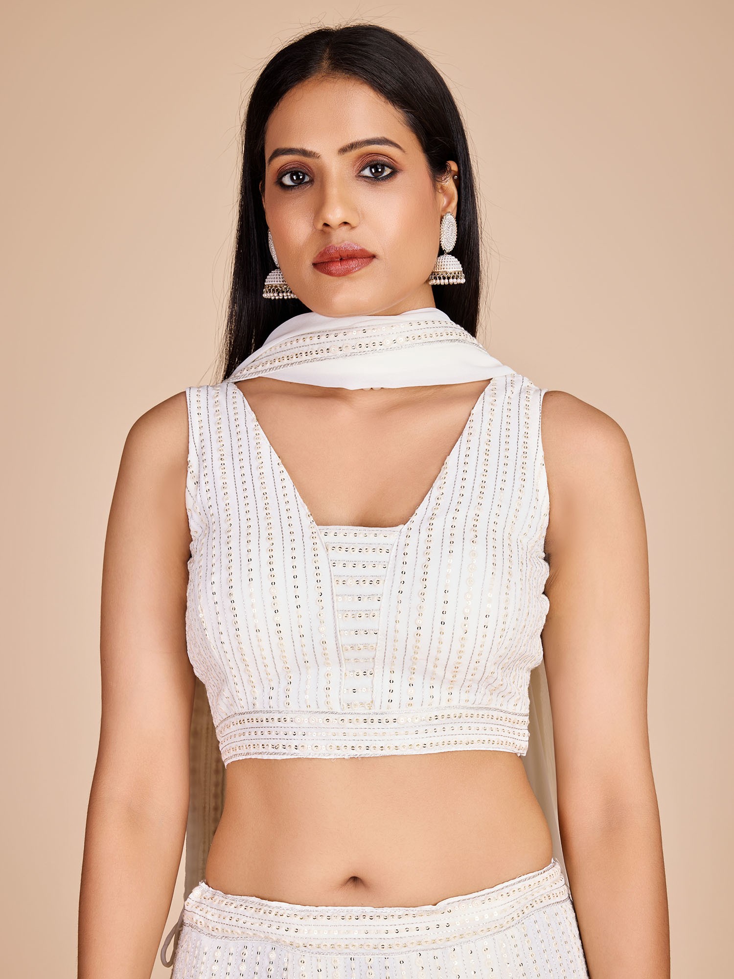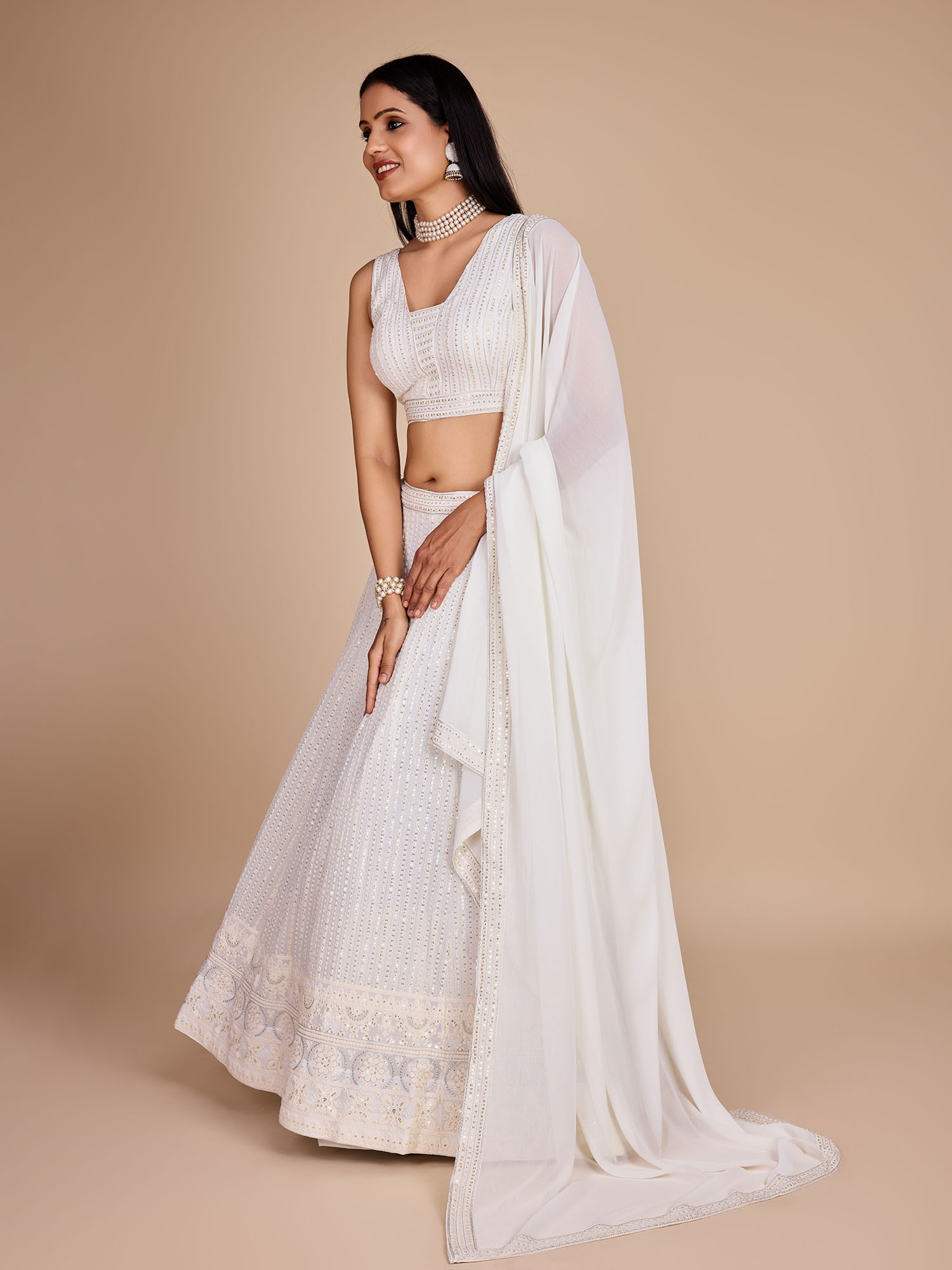 Georgette Lehenga Choli With Dupatta Adorned With Intricate Sequin Zari And Embroidery Work