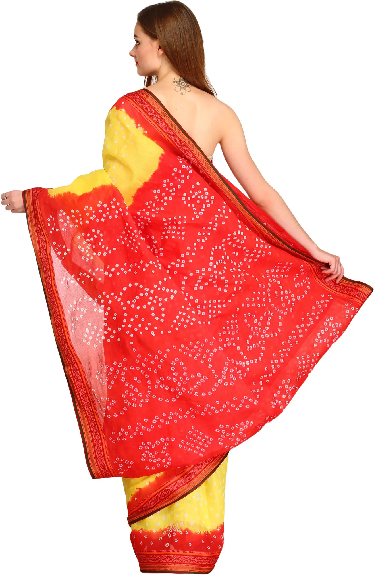Bandhani Saree from Rajasthan with Zari Weave on Border