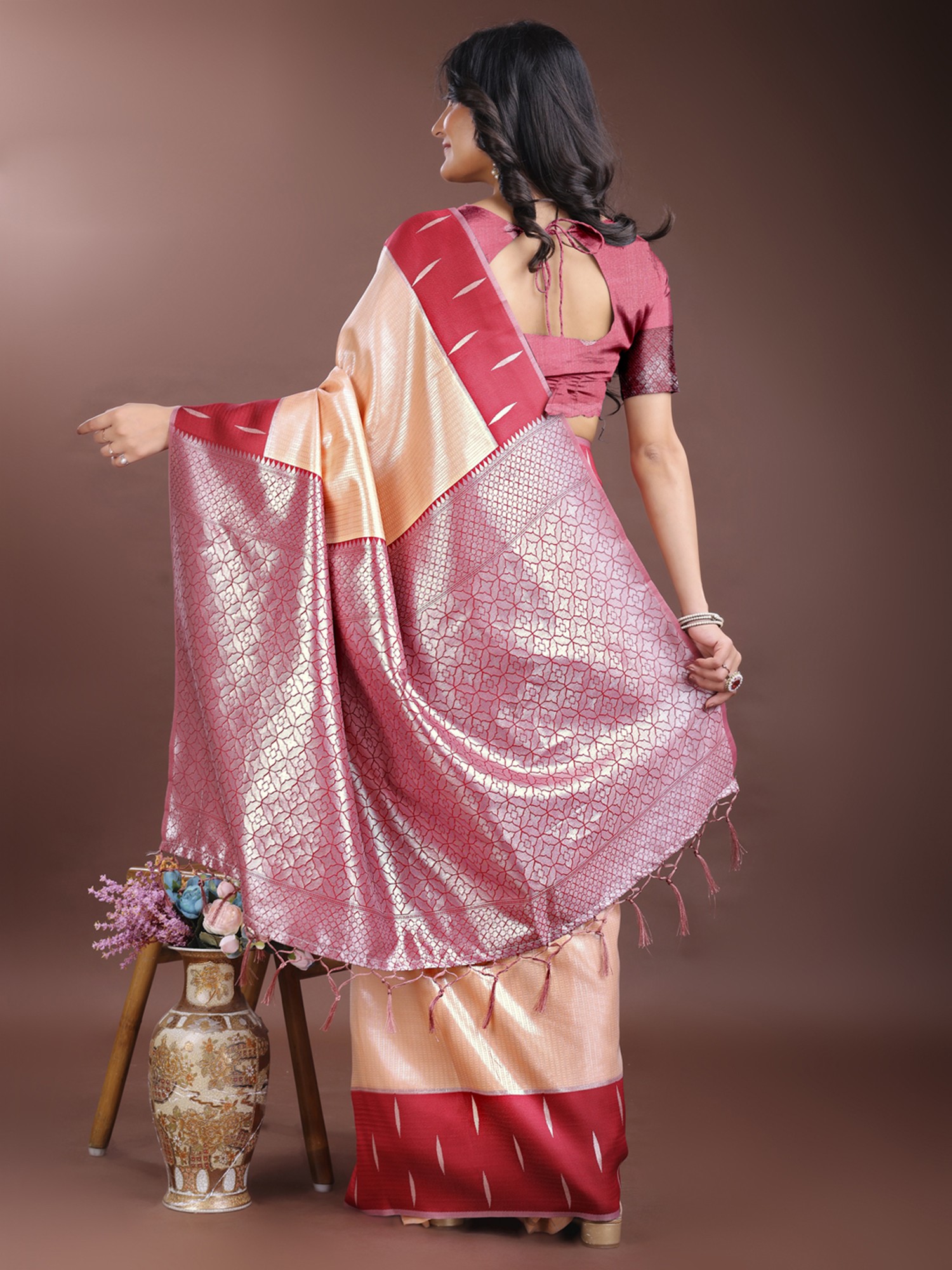 Silk Wide Border Festive Wear Silk Saree With Floral Printed Tassels Pallu