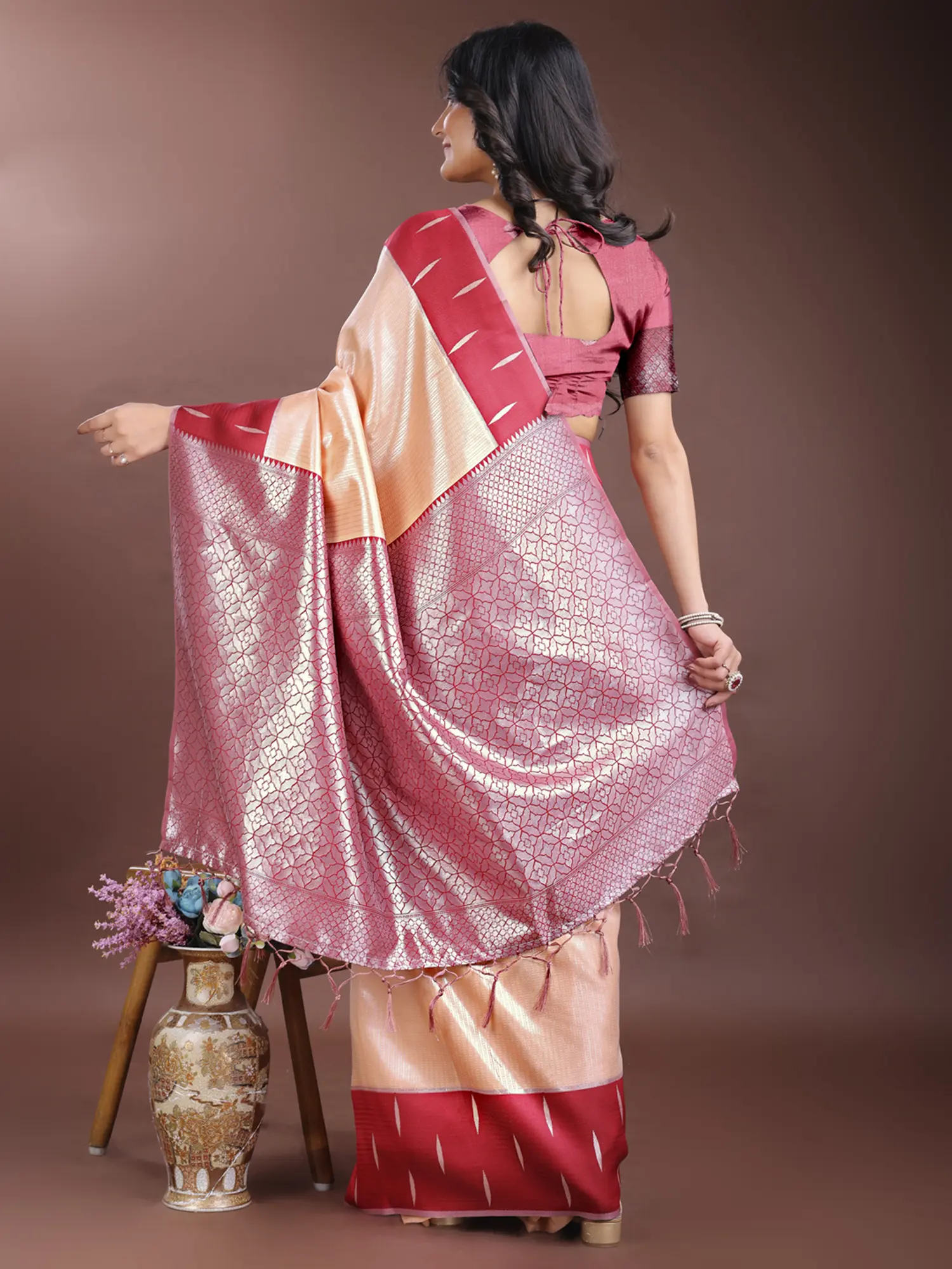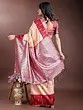 Fuchsia-Pink Floral Wide Border Silk Saree with Tanchoi Weave All-over