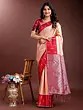 Bright-Red Floral Motifs Tanchoi Weave Silk Saree Wide Border
