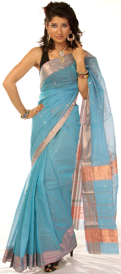 Light-Blue Chanderi Sari Hand-woven in Madhya Pradesh