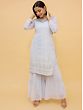 Light-Gray Georgette Palazzo PantSalwar Kameez Suit With Thread Embroidered and Sequins Work