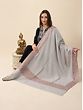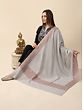 This stunning light grey shawl is distinguished by the thick blossom vine Sozni embroidery that lines its edges. Sozni is a traditional kind of needlework used in Kashmir that is renowned for its finesse and accuracy. Fine needles and vibrant silk threads are used by trained artisans to create beautiful designs in Sozni embroidery. Which is frequently influenced by paisleys, flowers, and other natural motifs.