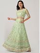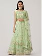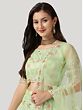 Draped in the Light-Green Net Lehenga Choli, elegance takes on a fresh and delicate hue. The vine motif, intricately threaded through embroidery, creates a visual symphony of refined craftsmanship. The light-green shade adds a touch of subtle sophistication, setting the stage for a graceful ensemble. Paired with a coordinating dupatta, this attire is more than just clothing; it's a celebration of artistry and style. The fusion of light-green net fabric, vine motif thread embroidery, and the complementing dupatta converge to craft a captivating statement of timeless beauty and cultural richness, making each wear an embodiment of grace.