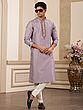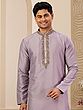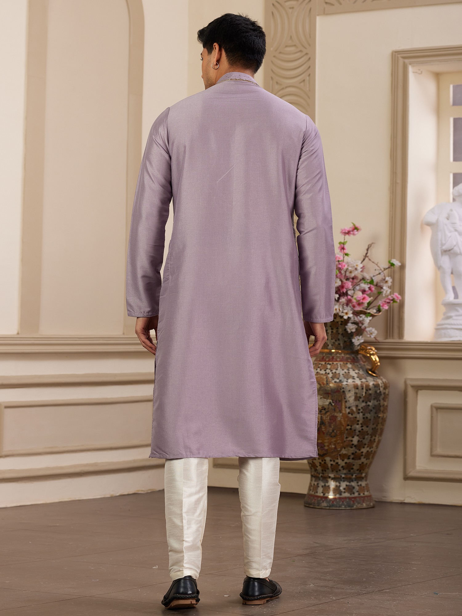 Wedding Kurta Pajama Set with Embroidered Collar and Jacquard Woven Paan Leaves