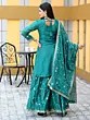 Chinon Elegant Sequins And Embroidery Work Party Wear Kurti Sharara Set With Dupatta