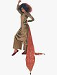 Light-Taupe Long Palazzo Salwar Kameez Suit with Zari-Embroidery and Red Dupatta