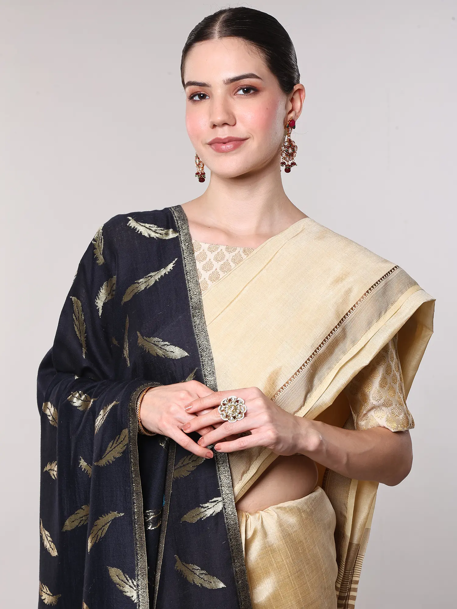 Lightweight Shawl with Zari woven Leaves from Amritsar