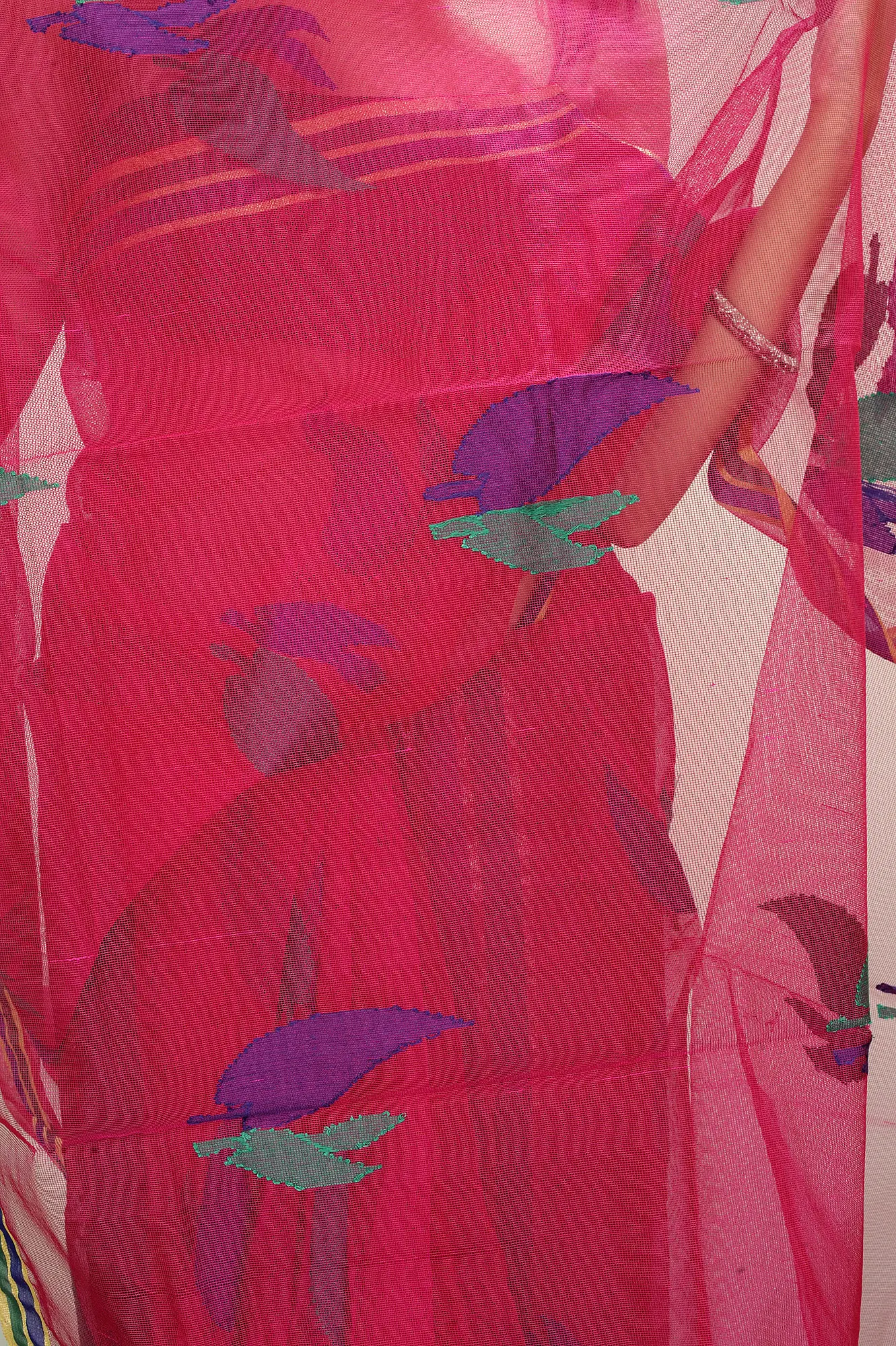 Wrap yourself in enchantment with our Lilac-Rose Banaras Saree. The delicate lilac-rose hue gracefully enhances the allure of the net fabric, exuding an air of elegance. The Saree's expanse is adorned with large Woven Leaves all-over, creating a mesmerizing tapestry of nature's beauty. The contrasting border adds a touch of drama, framing the Saree with exquisite charm. With this Saree, you become a canvas of artistry and grace, stealing the spotlight at any occasion. Embrace the harmonious fusion of color, texture, and design, as you become the embodiment of timeless beauty and poise.