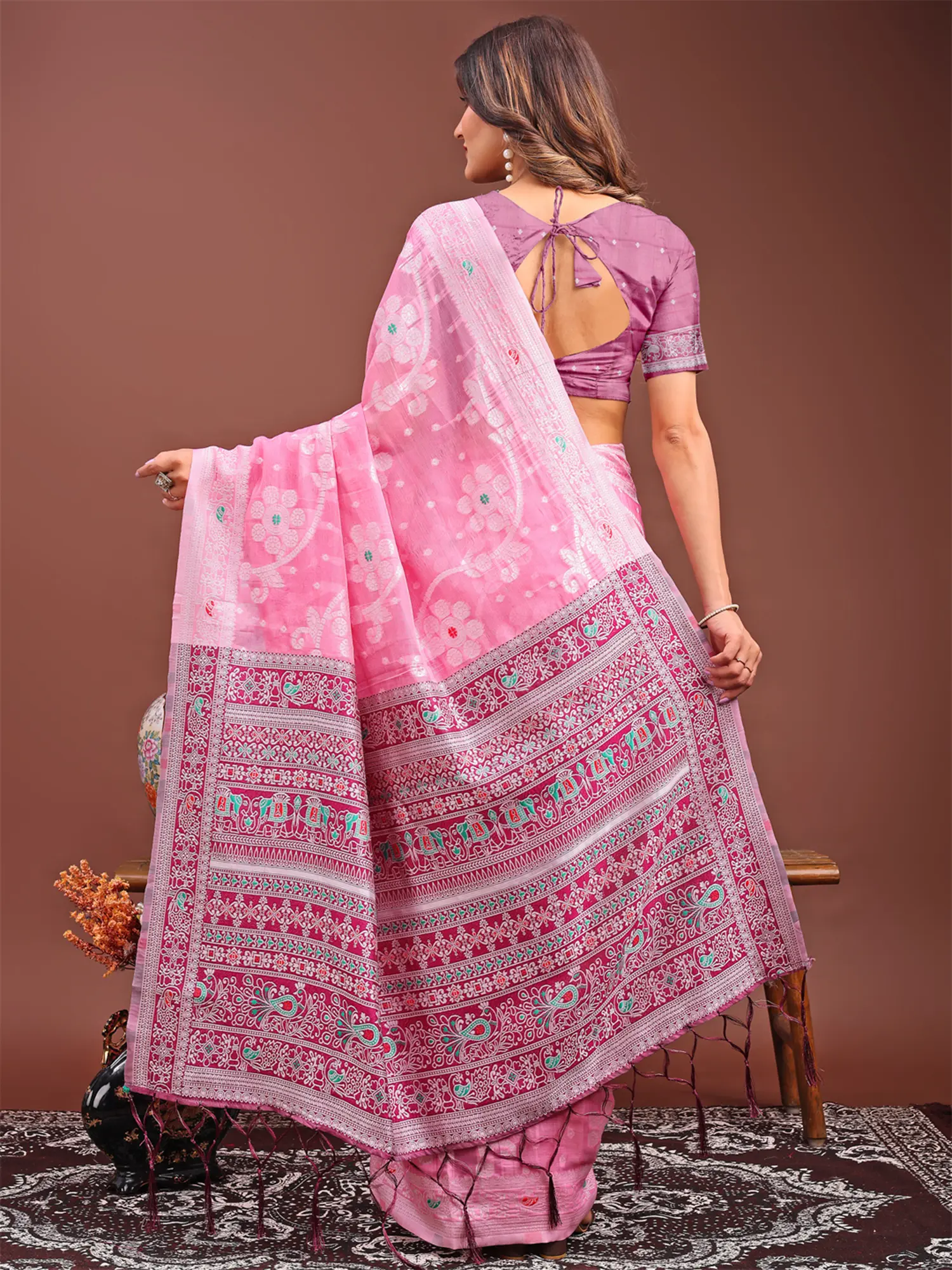 Wood Thrush Bandhani Saree from Rajasthan with Zari Weave on Border
