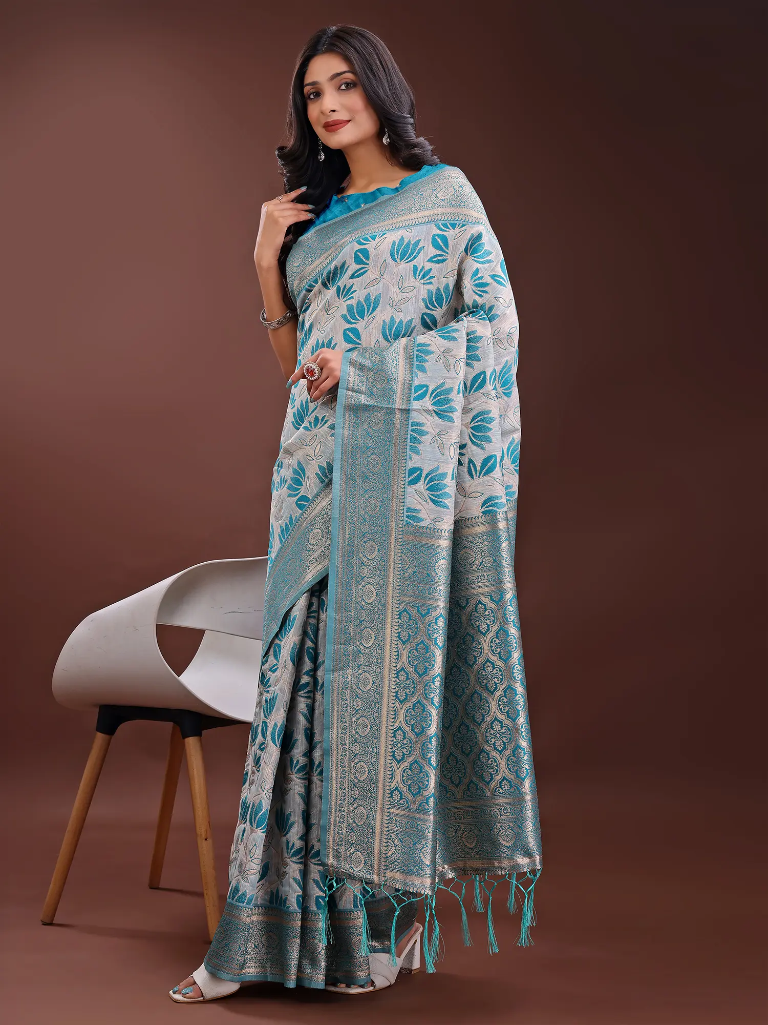 Pristine-White Pure Cotton Saree from Lucknow with Floral Chikan Hand-Embroidery