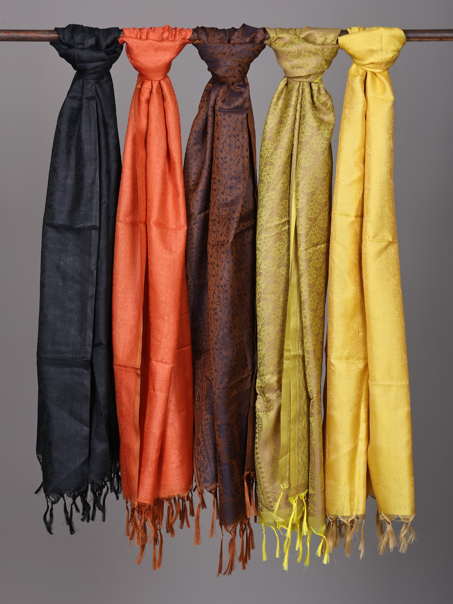 Looking to shop for some silk scarves that will go perfect with your any and every dress? We have these five pure silk scarves that come with tanchoi weaving style, pattern and design. Our collection has clubbed different bold colours to make sure you stay fashion-forward and remains the centre of attraction of the party. Aside from the party wear, these pure silk scarves will suit your day to day life. Wearing a top? Tie a knot around your neck and enjoy the perfect modern look. Want to club something with traditional kurta? Wrap it around your shoulders and make sure you are the showstopper wherever you go. If you're looking to pick something that you can wear daily and at the same time look eye-catching, feel free to shop for this best scarves collection. Don't wait until it's late! Shop now and enjoy the refined look you get after it.