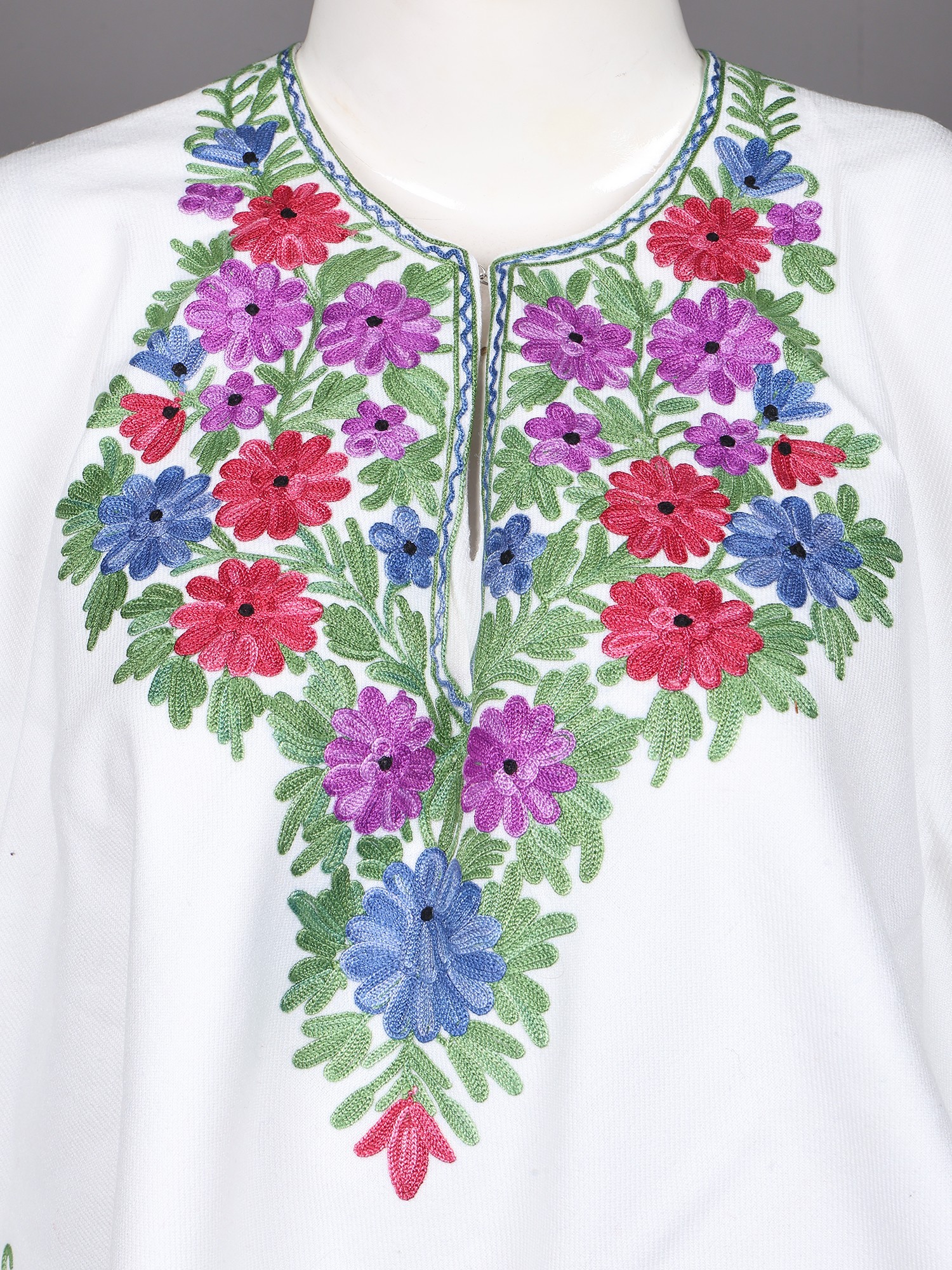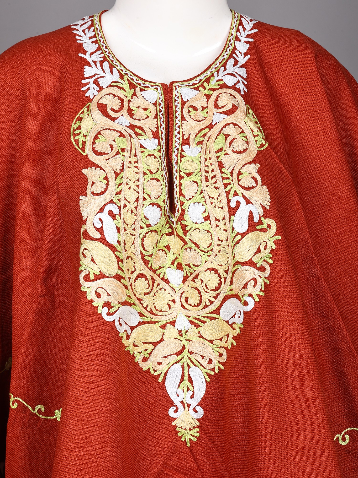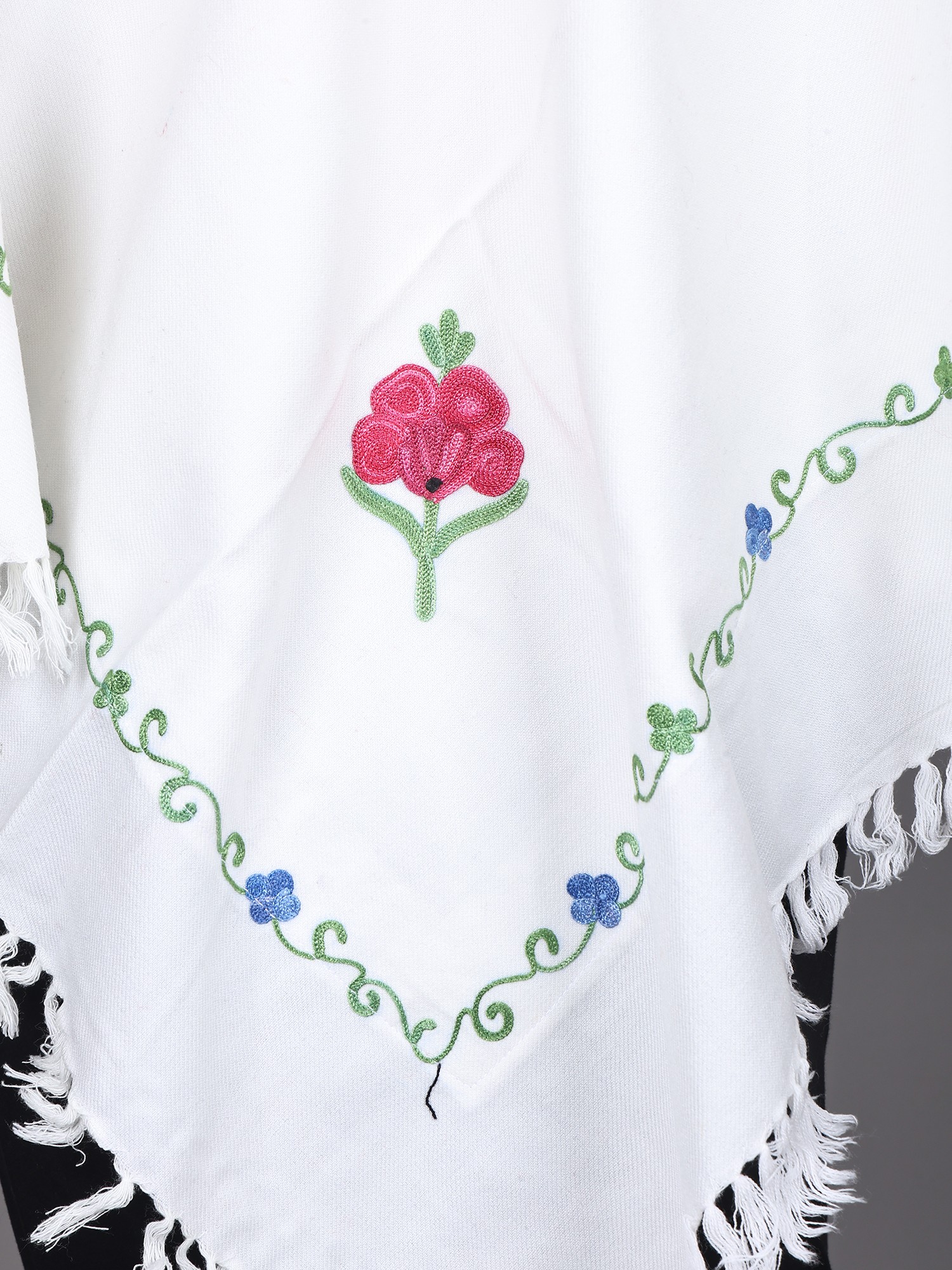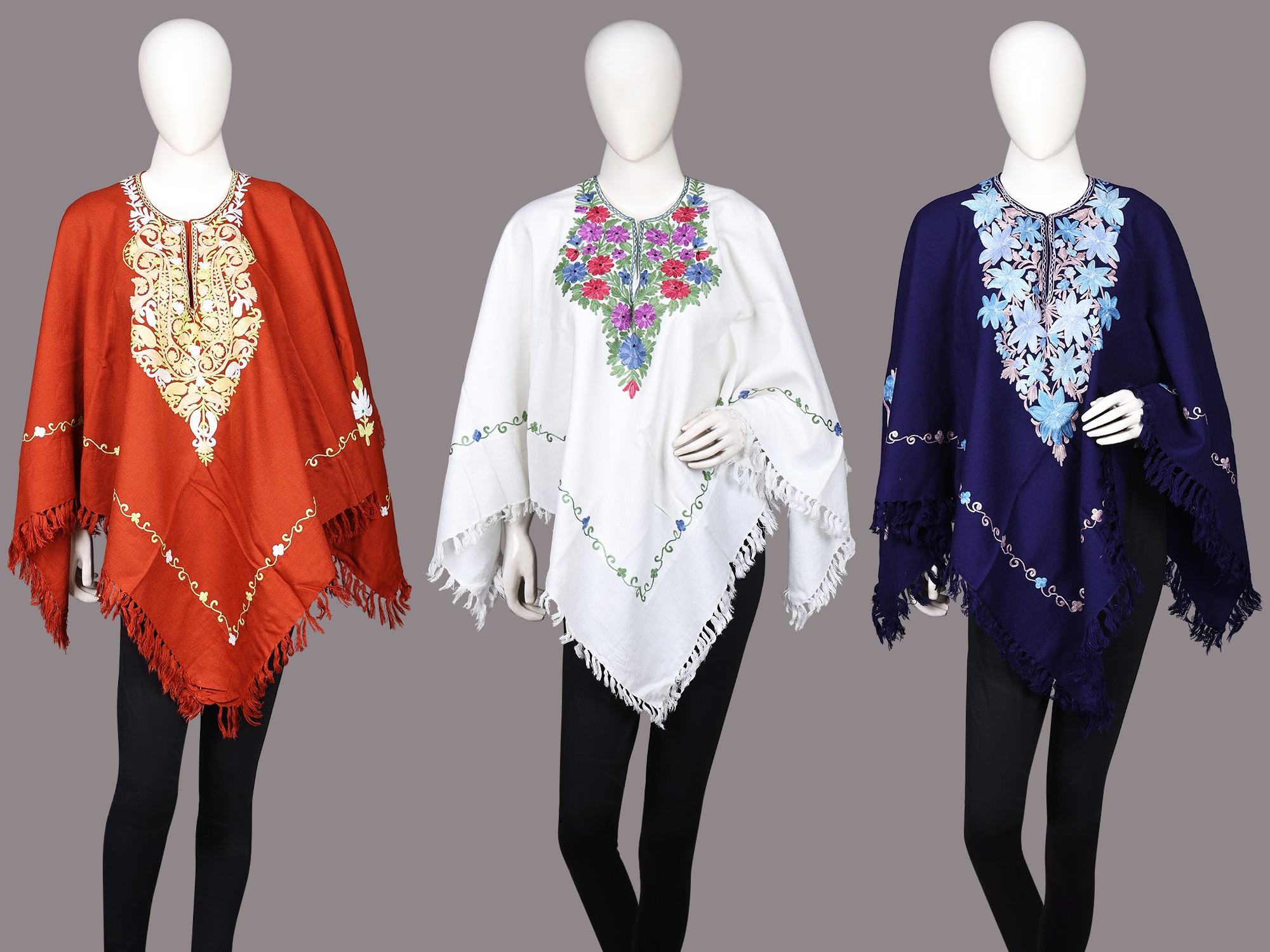 Lot of Three Wool Poncho with Aari Embroidered Flowers on Neck from Kashmir