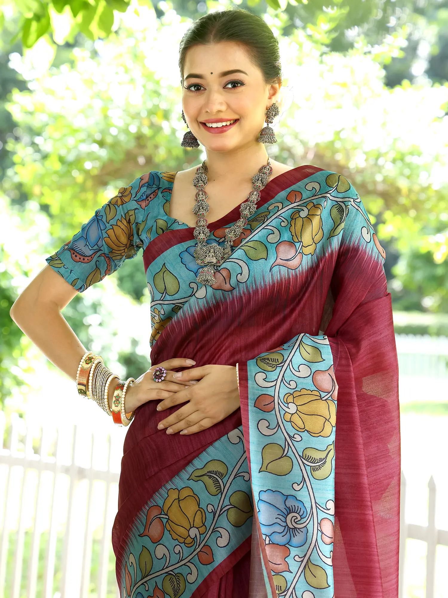 Bright-Maroon Sofi Silk Saree For Women With Blouse