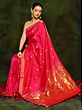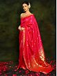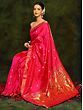 In the Magenta Pink Maharani Paithani Saree with Chattai Border and Zari Butta, the timeless allure of Paithani craftsmanship unfolds in every inch. This majestic silk drape pays homage to tradition with its classic Asharfi or gold coin pattern, symbolizing auspiciousness and fortune. The saree's beauty is further accentuated by the peacock motifs adorning the pallu, an enduring element in Paithani designs. Known for its regal charm, the Paithani saree has been the preferred choice of royalty for centuries. This saree not only reflects the grandeur of tradition but also captures the essence of a rich heritage, making it a prized possession for those who appreciate the art of Paithani weaving.