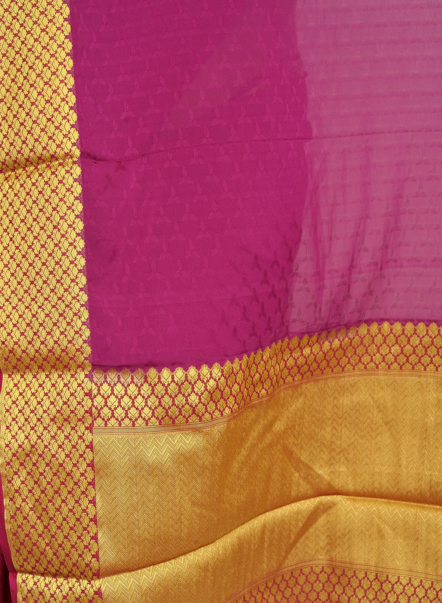 Wild-Rose Sari from Kashmir with Sozni Embroidered Maple Leaves by Hand