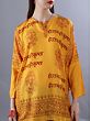 Marigold-Yellow Hare Krishna Hare Rama And Ganesha Ji Printed Short Kurti With Full Sleeves