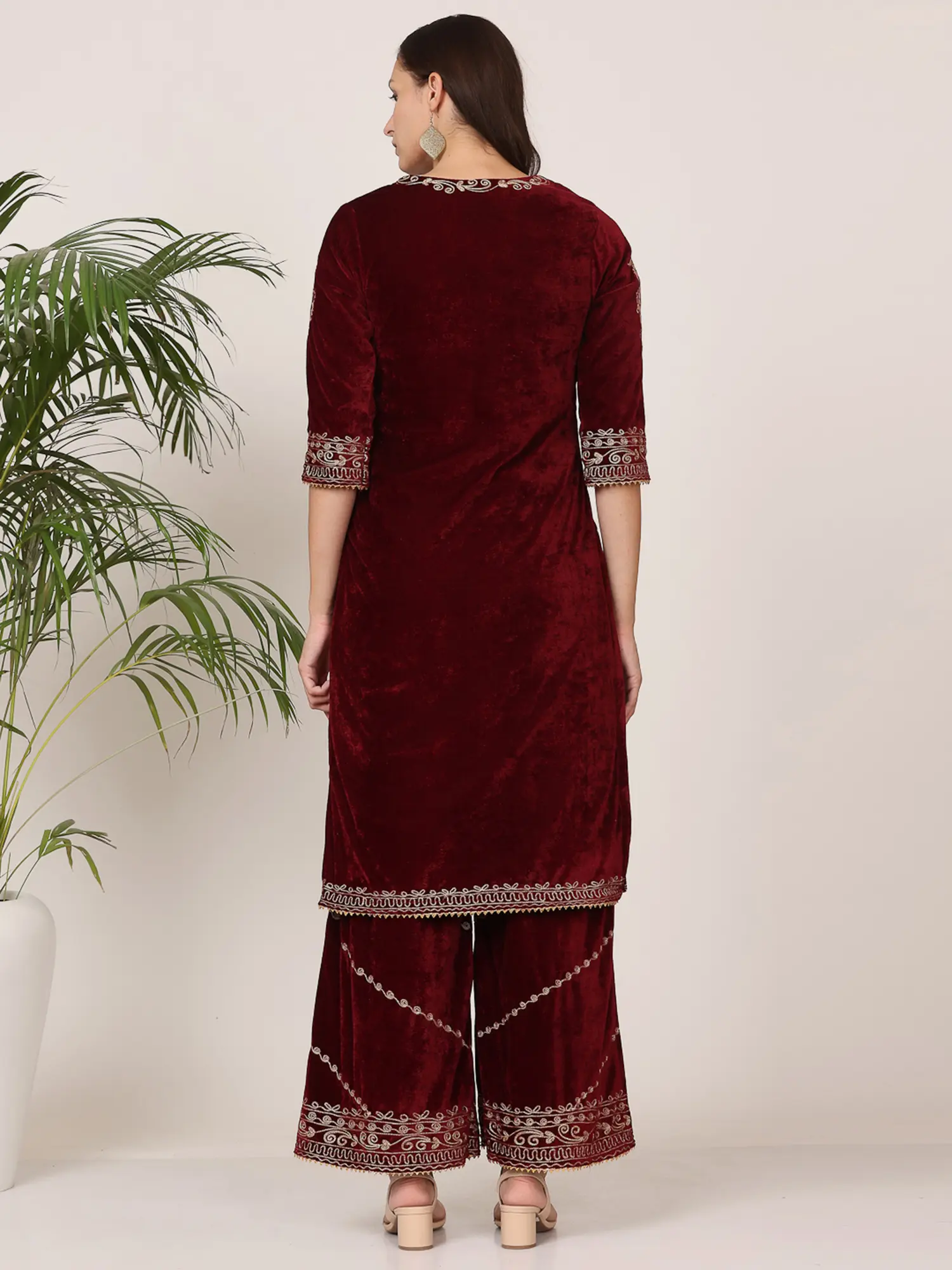 Elegance Redefined: The Maroon Velvet Kurta Palazzo Set